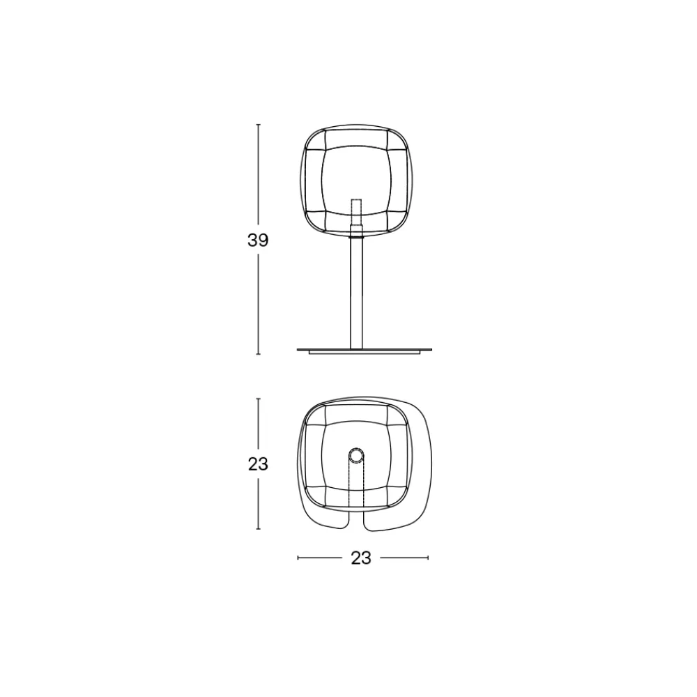 - L 23 x T 23 x H 39 cm;