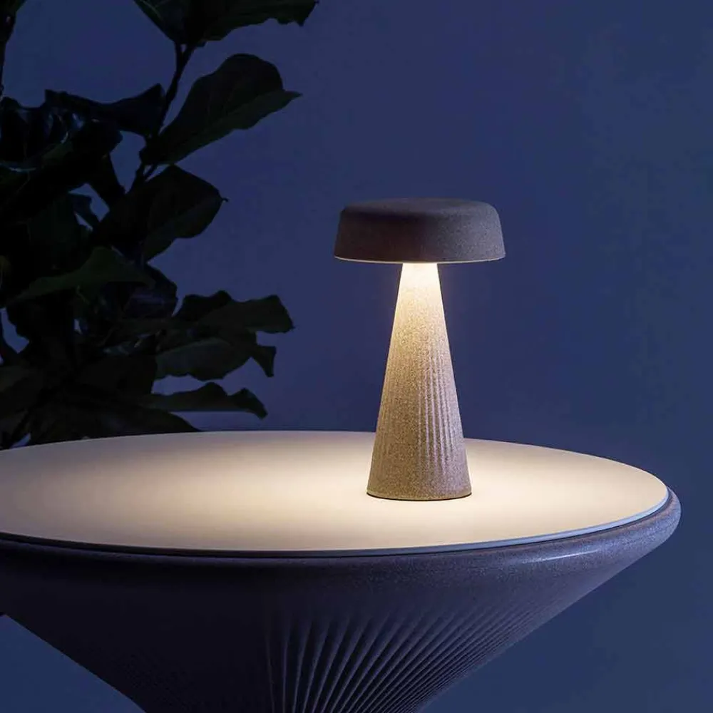 Tischlampe made in Italy mit farbiger Polyethylenstruktur. Eine originelle Beleuchtungsidee, die sich durch die besondere gestreifte Oberfläche auszeichnet, die die gesamte Basis bedeckt und originelle Licht- und Schattenspiele erzeugt. Dank seiner geringen Größe kann es überall mit großer Freiheit positioniert werden und erweckt eine kleine Kaskade von äußerst originellem und kreativem Licht zum Leben, das jeden Raum im Haus mit einem Hauch von Farbe bereichern kann. Die Oberflächen erinnern an natürliche Materialien und die große Auswahl an Farben ermöglicht es Ihnen, zwischen diskreten und nüchternen Lösungen und exzentrischeren und farbenfroheren Ideen zu wählen. Dadurch ist dieses Produkt vielseitig und ideal, um alle Anforderungen und Bedürfnisse bestmöglich zu erfüllen.
