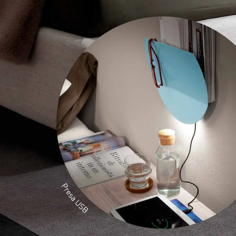 Die Stärke, die diesen Artikel einzigartig macht, ist sein äußerst modernes und funktionales Design, denn es ist mit einem praktischen Fach für Zeitschriften und Bücher und einer USB- Buchse zum bequemen Aufladen Ihrer Geräte ausgestattet. Diese Elemente machen die Lampe innovativ und originell , mit einem perfekten Design, das als Lichtpunkt über Ihrem Nachttisch verwendet werden kann und auf tadellose Weise mehr Funktionen in sich vereint. Der Diffusor verleiht dem Raum dann einen Hauch von Farbe und Lebendigkeit und steigert seinen ästhetischen Wert noch mehr.