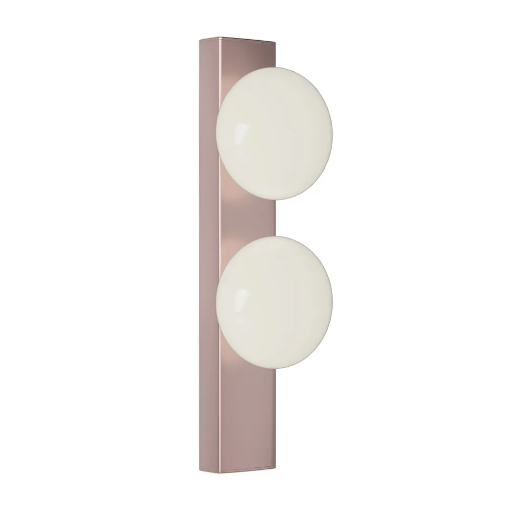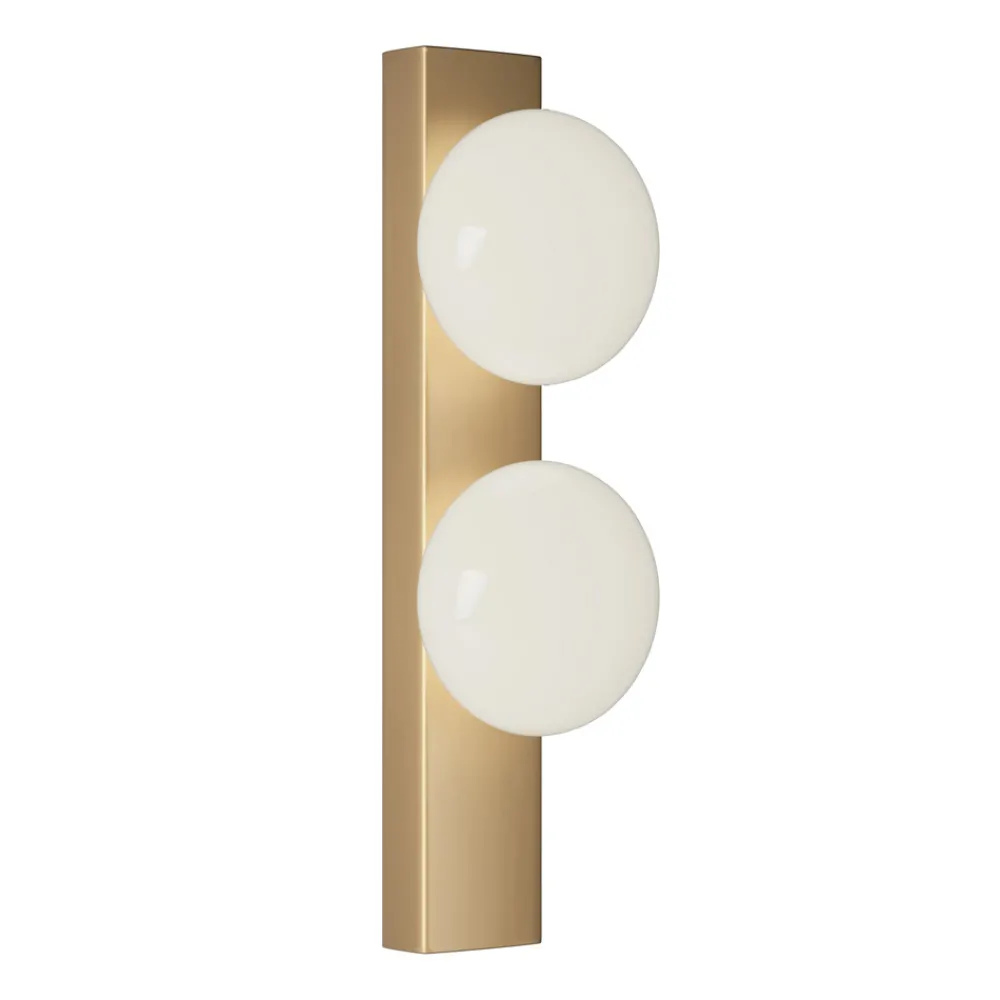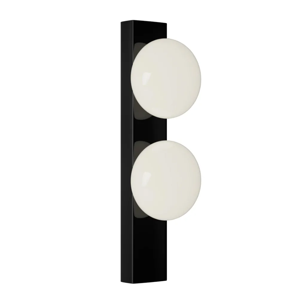 Diese Wandleuchte ist die perfekte Mischung aus geometrischem Design und raffiniertem Minimalismus . Die essentielle Komposition wird durch eine oder zwei leuchtende Opalglaskugeln verstärkt, die ein weiches, einladendes Licht verbreiten, ideal für die Schaffung einer entspannenden und anspruchsvollen Atmosphäre.