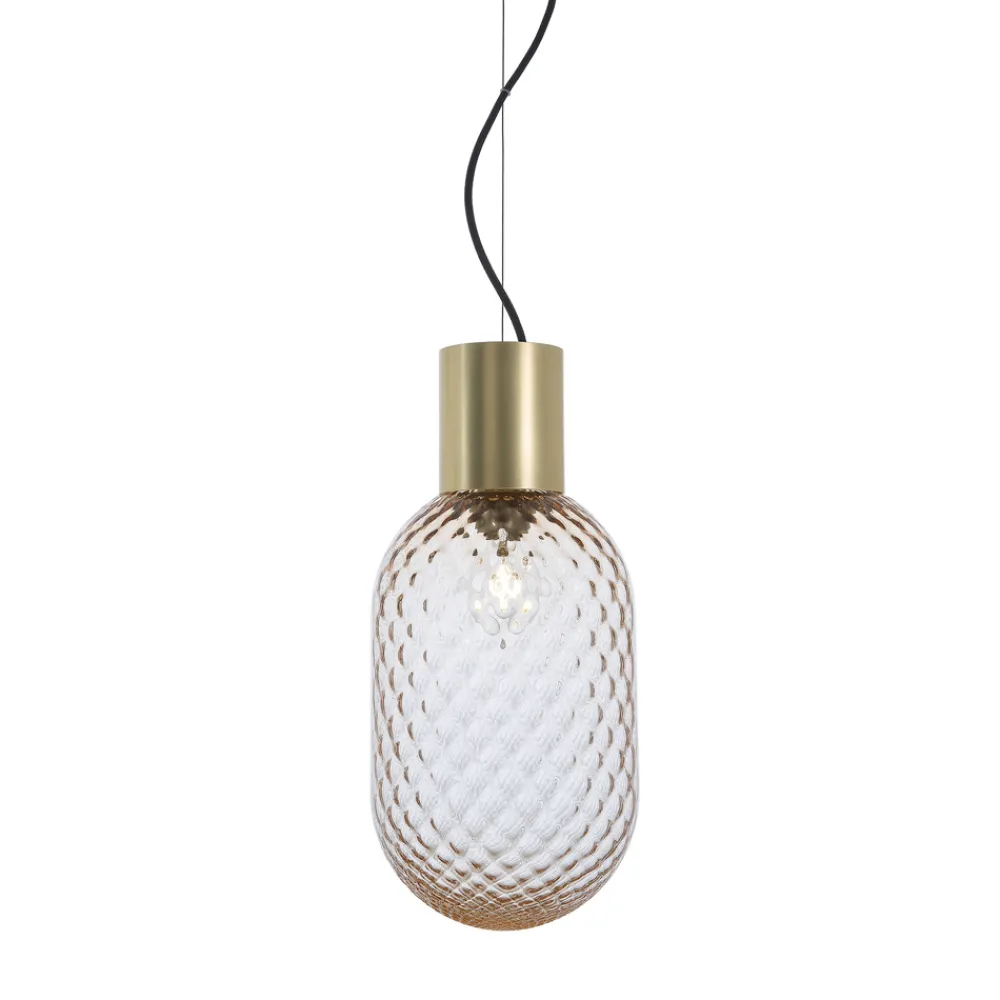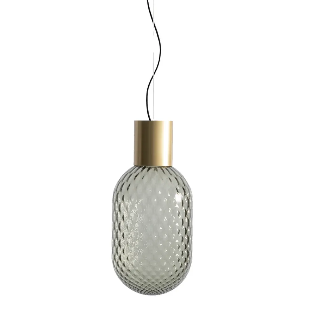 Die Lampenkollektion erinnert an die Kostbarkeit von Parfümflaschen und orientalischen Essenzdiffusoren. Die Art des Glases erzeugt unterschiedliche Lichteffekte, gedämpfter oder sinnlicher. Der Zauber des Objekts lebt sowohl im Einzelstück als auch in der Kombination mehrerer Variationen. Die Kollektion besteht aus Pendel-, Tisch- und Wandleuchten. Das graue oder rosa Glas, auch in der satinierten Version, zeichnet sich durch das Ballonton-Verfahren aus, eine traditionelle venezianische Technik mit einem besonderen optischen Effekt.