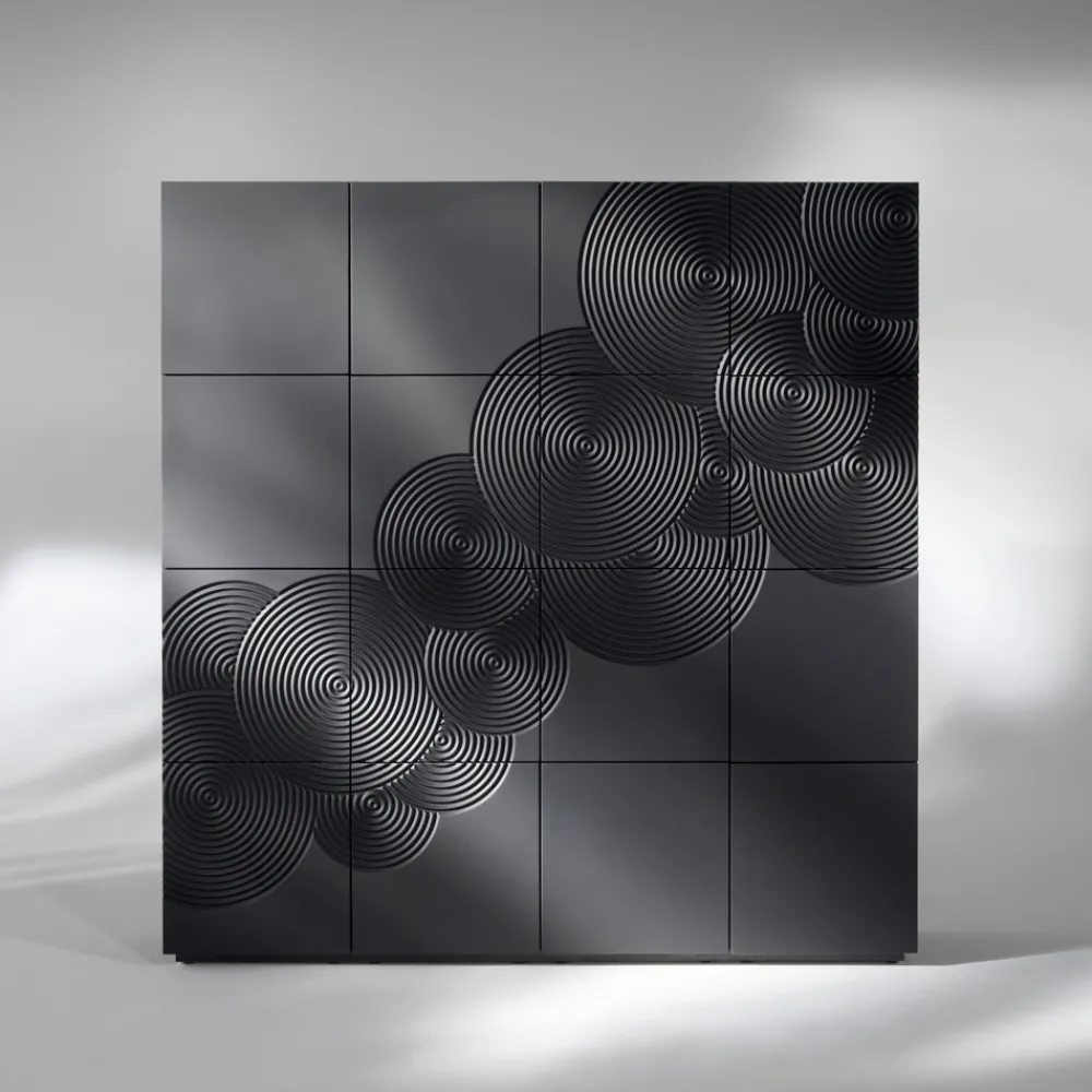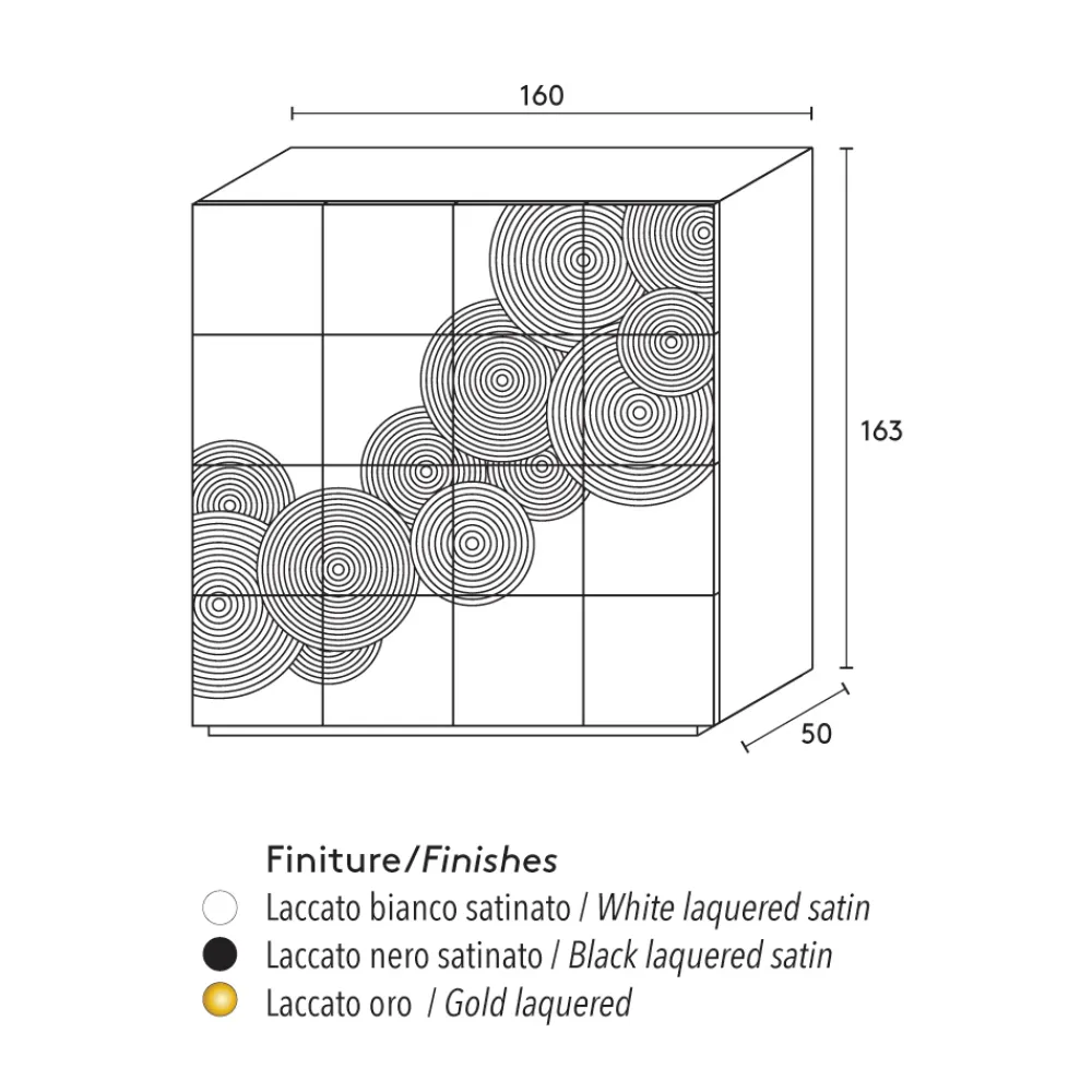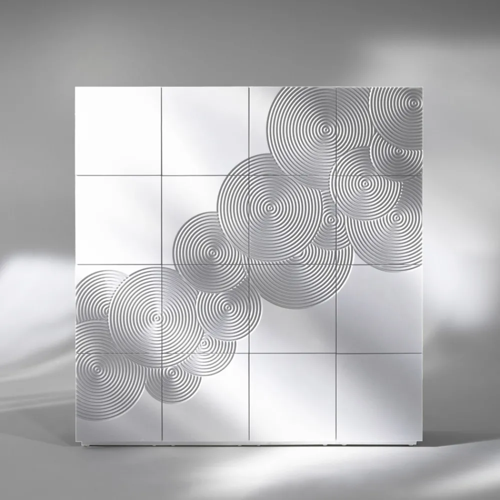 Sideboard mit 8 dekorierten Türen und 4 Innenregalen aus lackiertem MDF, hergestellt in Italien.