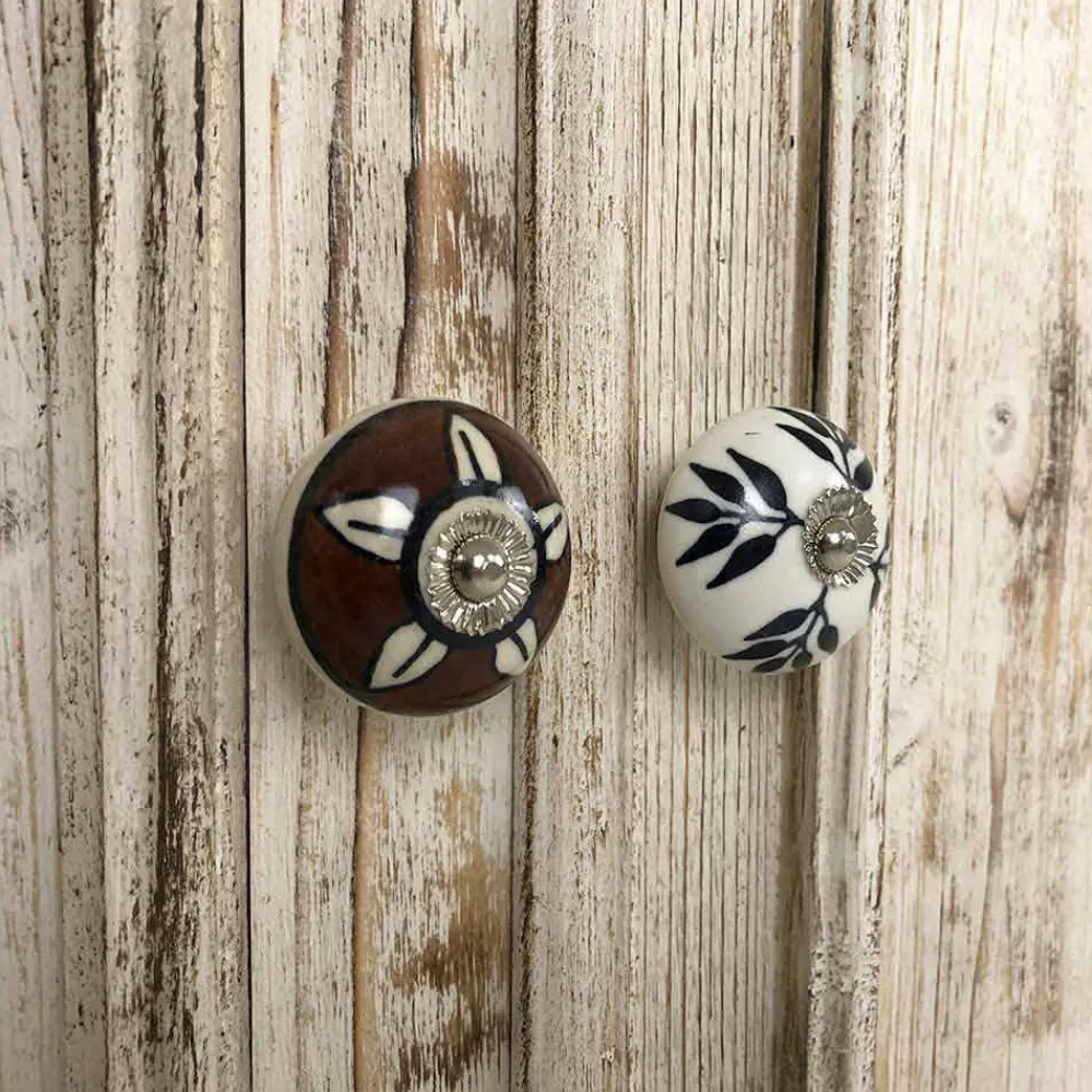 Handgefertigtes Massivholz Sideboard mit Keramikknöpfen, hochwertige Made in Italy.