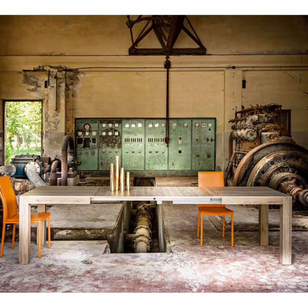 Der Oky-Esstisch besteht aus Melamin mit einer natürlichen Eichenoberfläche. Er verfügt über 4 praktische Verlängerungen von jeweils 40 cm, mit denen Sie den Tisch über ein praktisches und schnelles Verlängerungssystem auf Gleitschienen auf eine Tischfläche von 300 cm erweitern können.