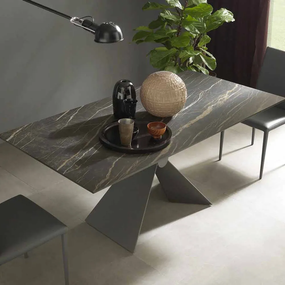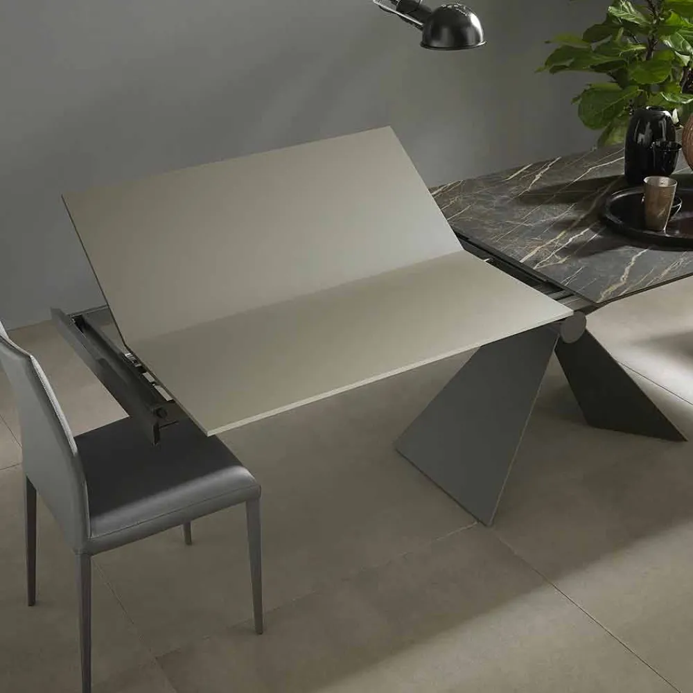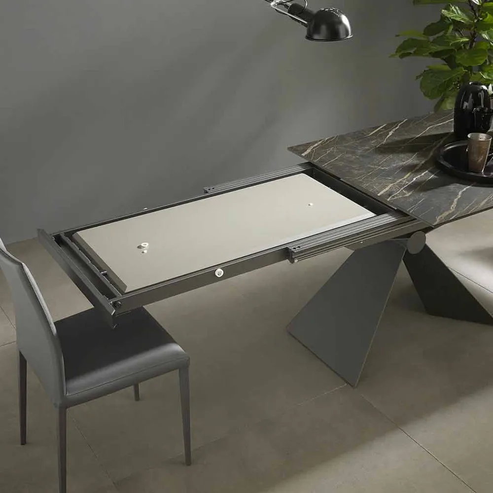 Ausziehbarer Esstisch mit Metallknoten und Keramikplatte made in Italy.