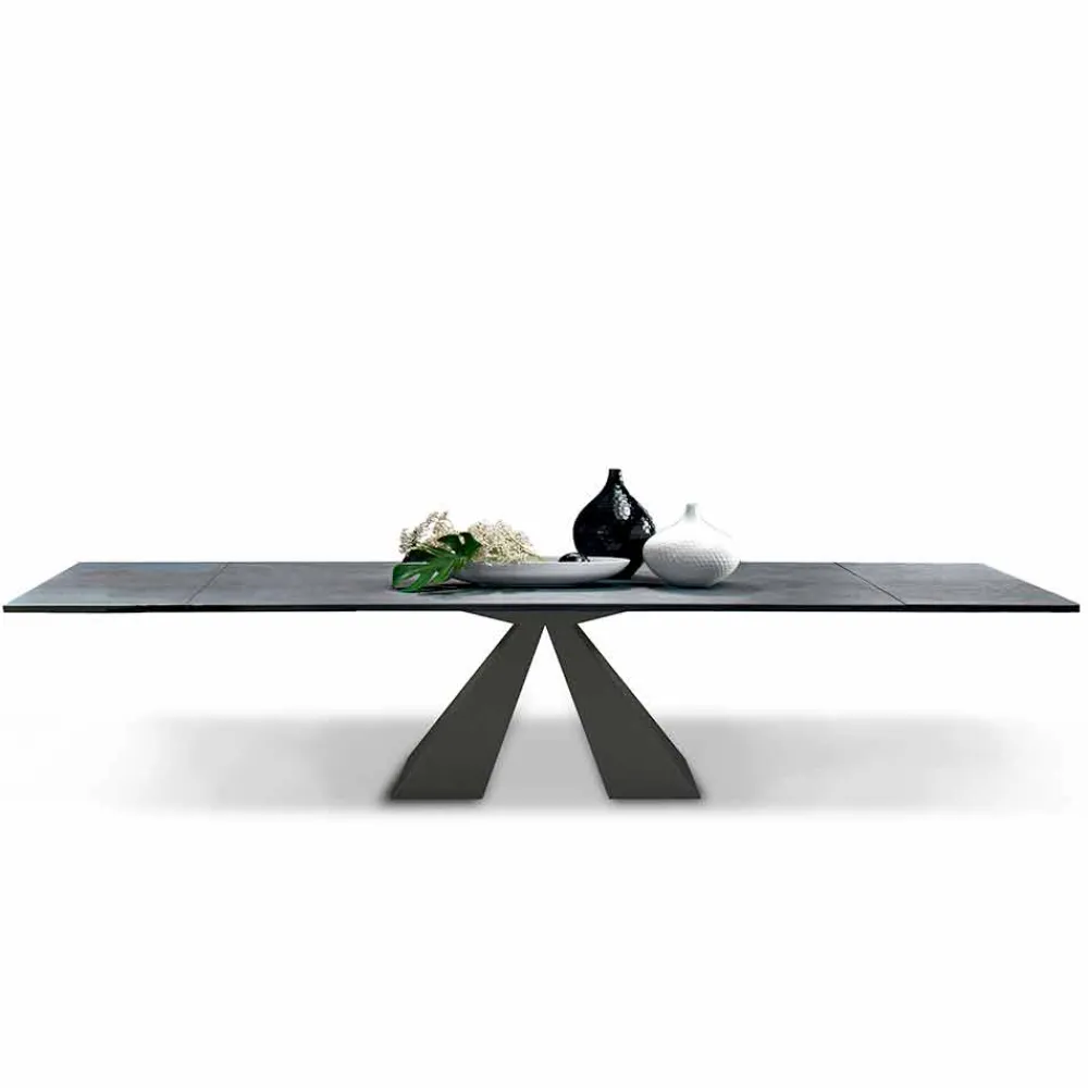 Ausziehbarer Esstisch aus HPL-Laminat und Stahl, hergestellt in Italien, hohe Qualität.