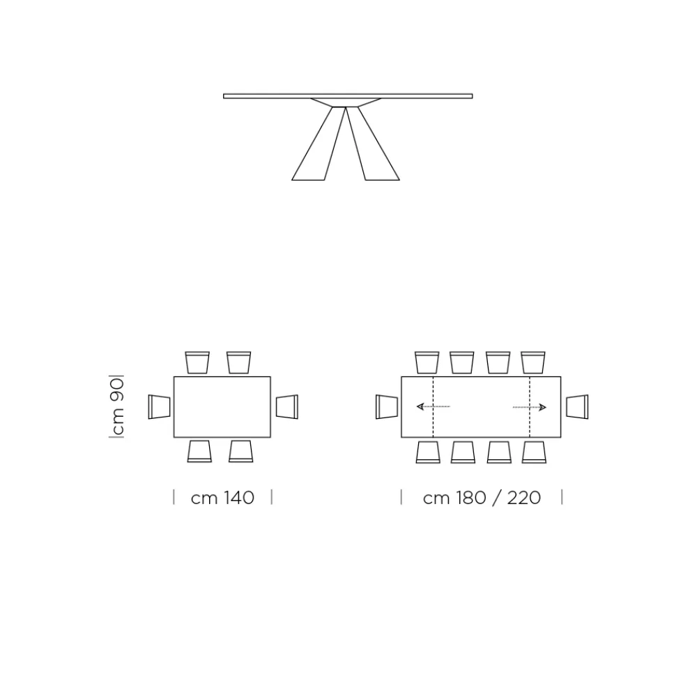 - L 140/220 x T 90 x H 75,3 cm 10 Sitzplätze (2 Verlängerungen à 40 cm);