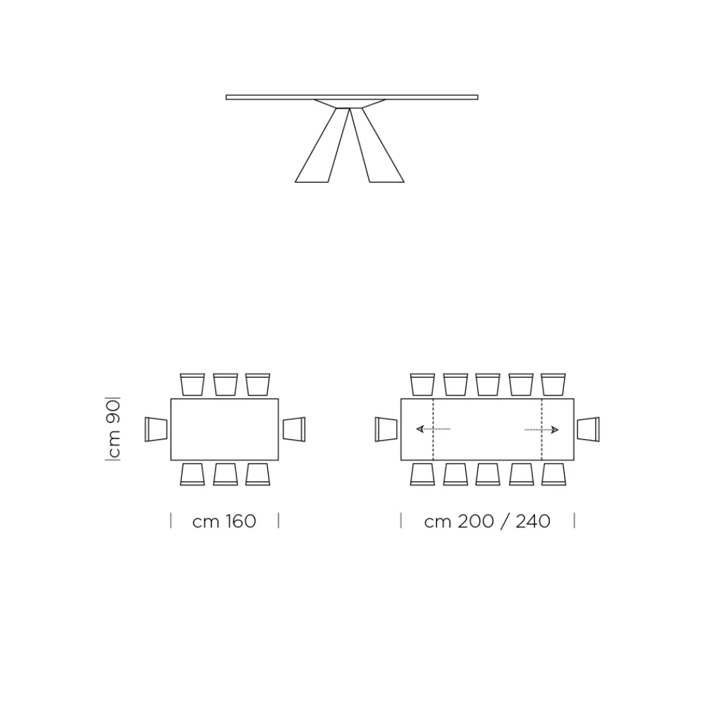 - L 160/240 x T 90 x H 75,3 cm 12 Sitzplätze (2 Verlängerungen à 40 cm);