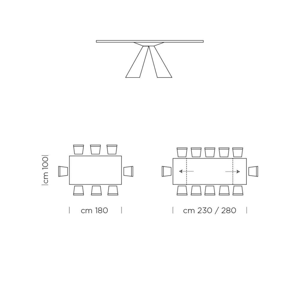 - L 180/280 x T 100 x H 75,3 cm 12 Sitzplätze (2 Verlängerungen à 50 cm);