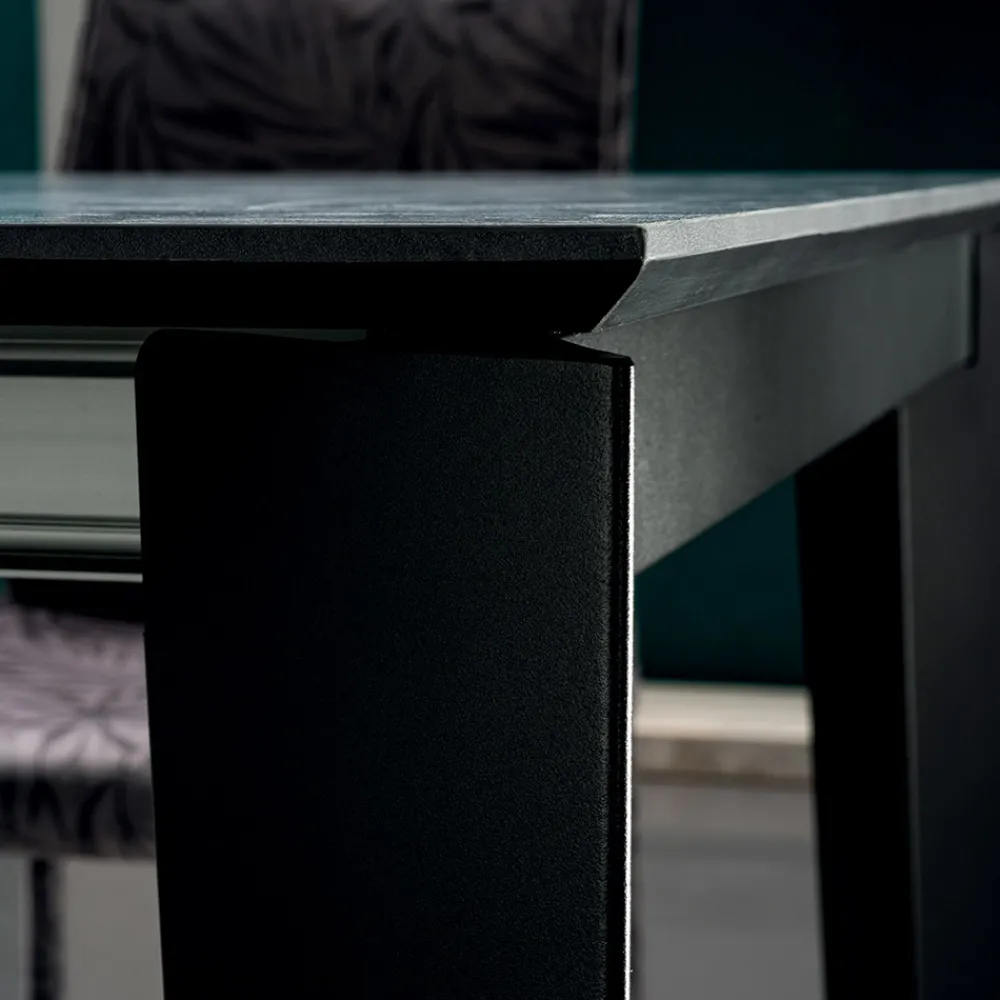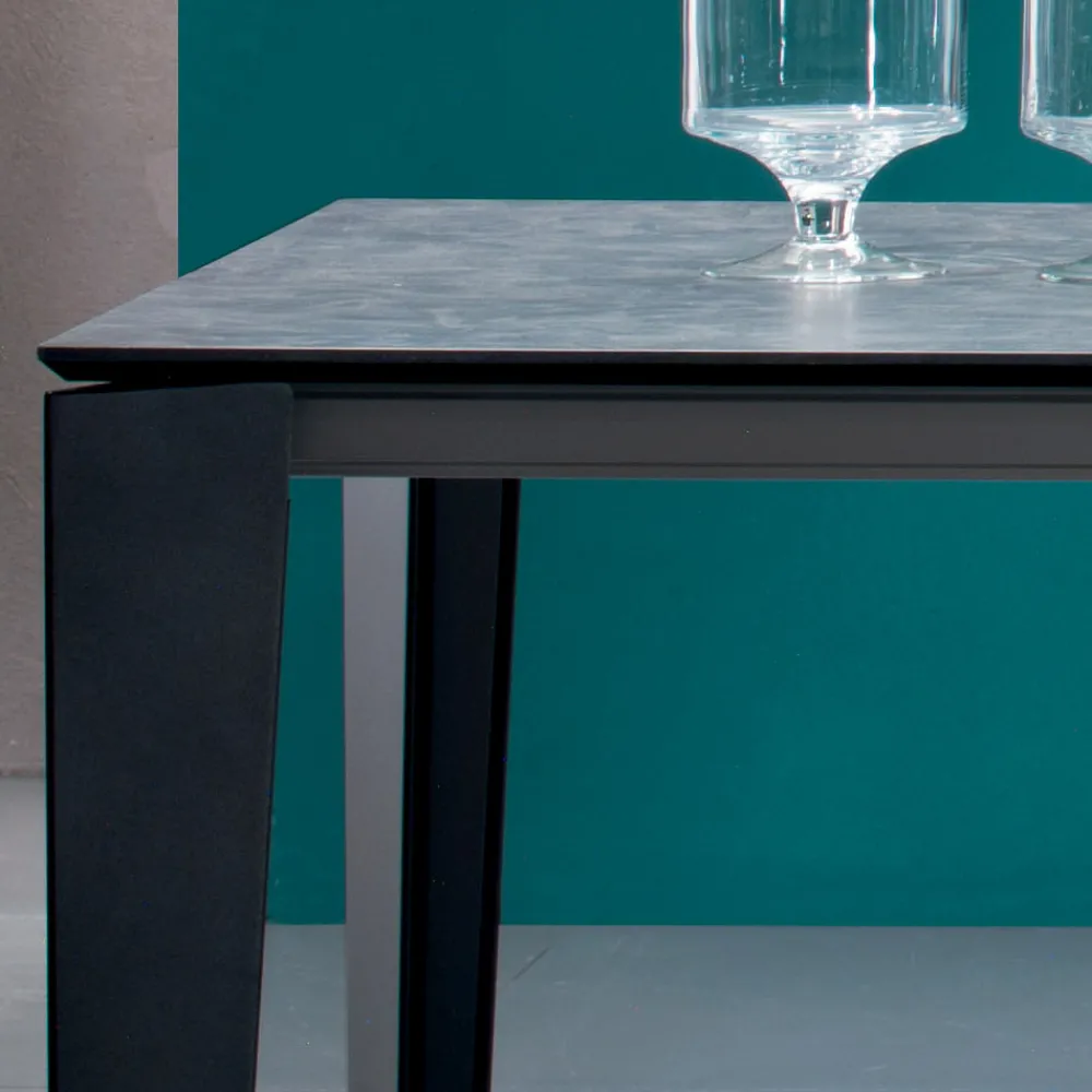 Esstisch mit ausziehbarer Platte aus HPL-Laminat in Steinoptik mit 45° abgeschrägtem Kantenprofil und schwarz lackiertem Stahlgestell . Ein in Italien handgefertigtes Einrichtungsaccessoire mit hochwertigen Materialien und 100 % Made in Italy , das die perfekte Verbindung von Eleganz und Funktionalität zum Leben erweckt. Seine Besonderheit stellt die praktische ausziehbare Platte dar, die eine Länge von 310 cm erreichen kann und so Platz für bis zu 16 Personen für wunderbare Mittag- und Abendessen in Gesellschaft bietet. Sein solides und elegantes Design wird durch die HPL-Oberseite unterstrichen und bereichert, ein Hochdrucklaminat, das äußerst beständig gegen Chemikalien, Abrieb und Kratzer ist und eine solide Auflagefläche mit ausgezeichneter Haltbarkeit im Laufe der Zeit bietet.