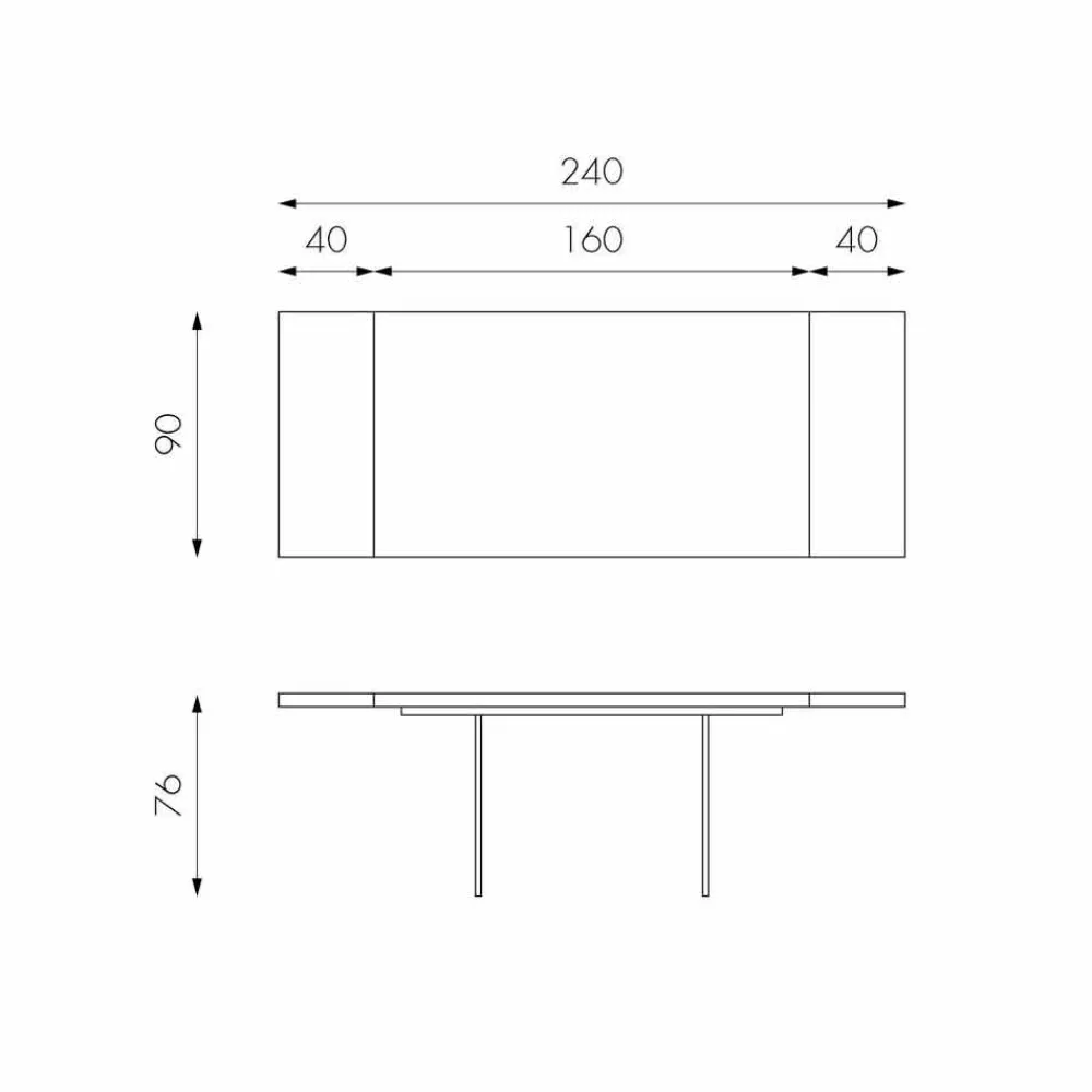 L160/240x T 90x H 76cm; Nr. 2 Verlängerungen von jeweils 40 cm
