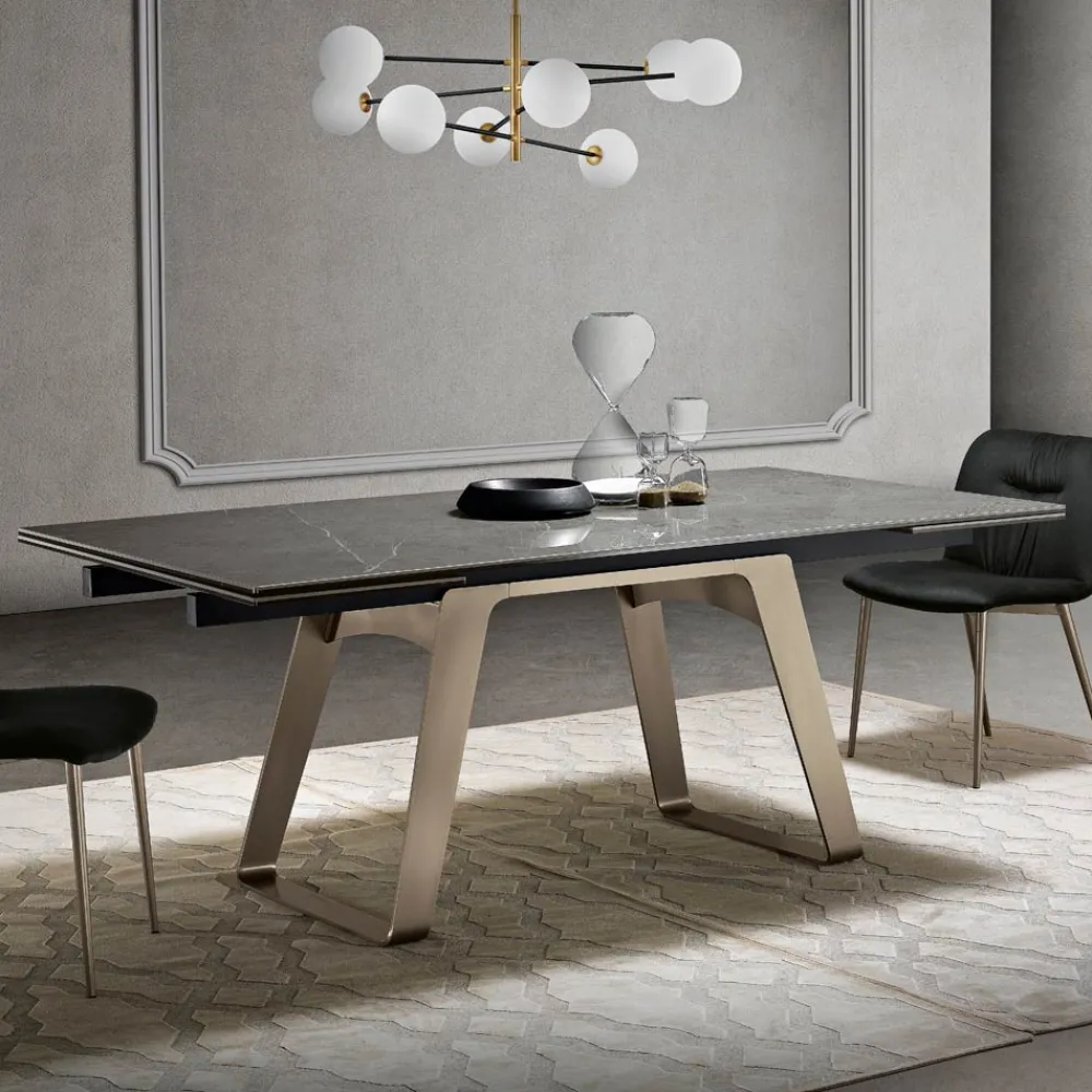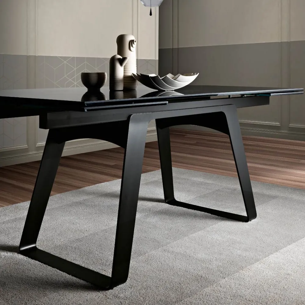 Ausziehbarer Esstisch aus Glaskeramik und Metall Made in Italy