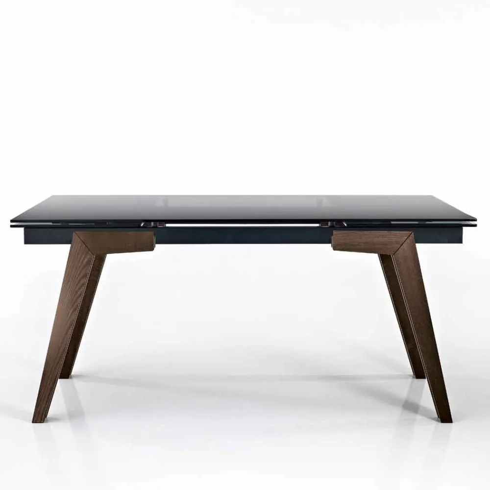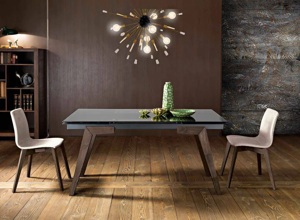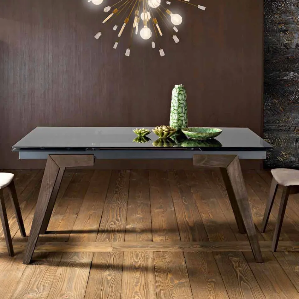 Viadurini Living Esstische-Fester Fasstisch aus glänzendem Calacatta-Schwarz-Laminam – Dialogo