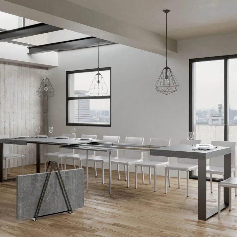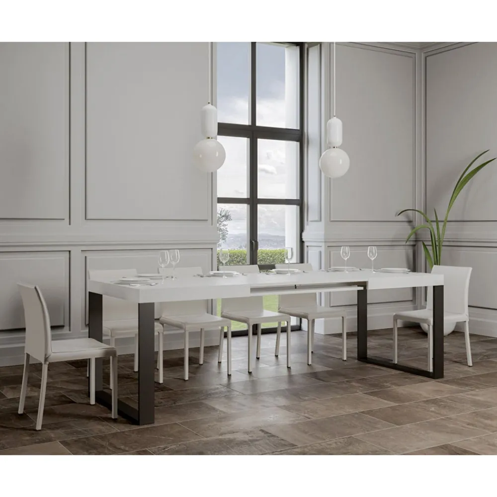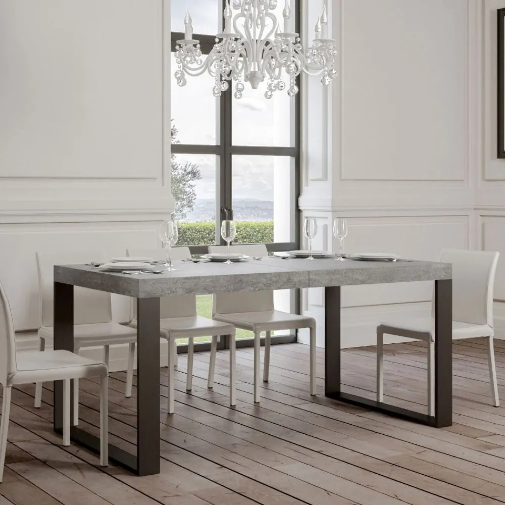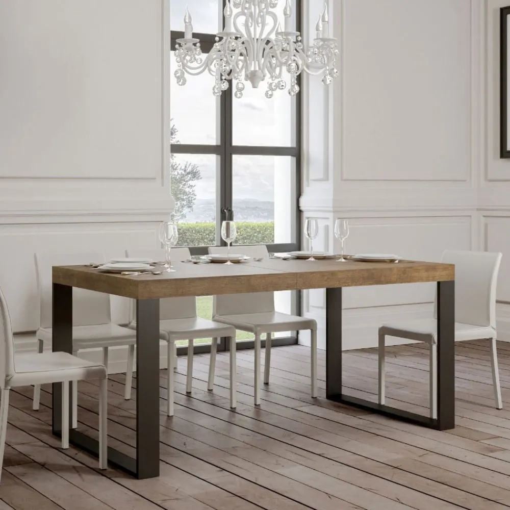 Ausziehbarer Esstisch, Platte aus furniertem Holz, 8 cm dick, und Gestell aus anthrazit lackiertem Eisen,vollständig Made in Italy..