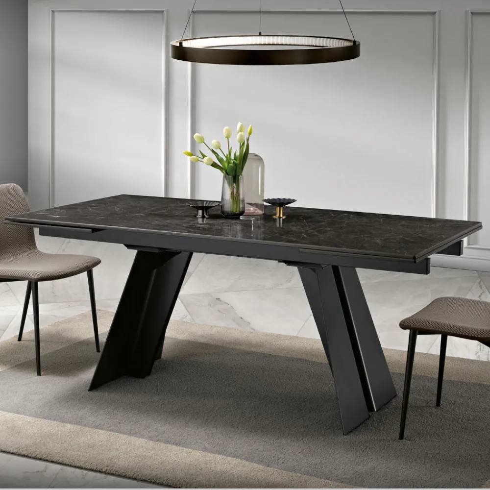 Ausziehbarer Esstisch aus Glaskeramik und Metall Made in Italy