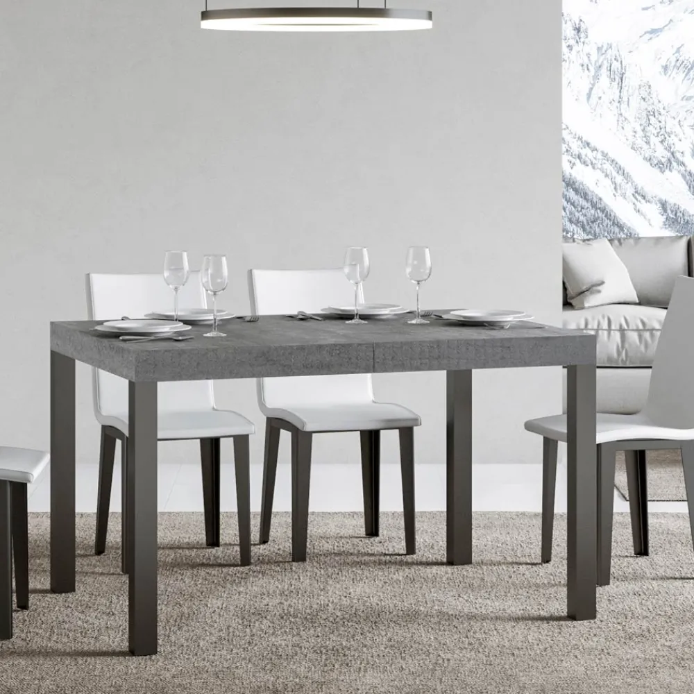 Ausziehbarer Tisch mit Platte aus Holzfurnier und Gestell aus anthrazit lackiertem Eisen, komplett Made in Italy.