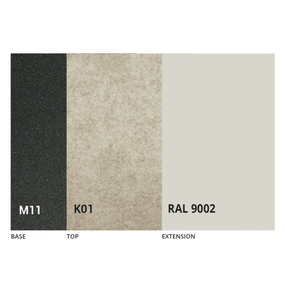 Die Platte, die Verlängerung und das Untergestell des Tisches können mit verschiedenen Musteroberflächen individuell gestaltet werden. Für Informationen kontaktieren Sie uns über das Formular “ Informationen anfordern „.