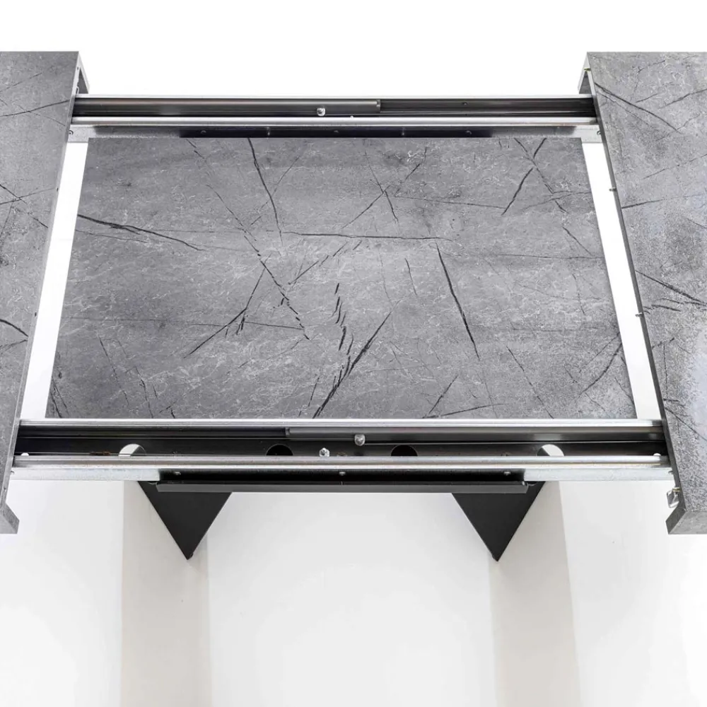 Esstisch im modernen Design aus Melaminholz mit schwarz lackiertem Metallgestell . Dieser wunderbare Artikel hat die Möglichkeit, die Platte auf 170 cm bis zu einem Maximum von 220 cm zu verlängern, dank der 2 Verlängerungen von jeweils 50 cm, die unter der Platte positioniert sind und ein extrem einfaches Herausziehen dank des synchronisierten automatischen Öffnungsmechanismus gewährleisten, den sie Ihnen ermöglicht um die beiden Seiten des Tisches gleichzeitig zu verlängern, indem Sie einfach eine davon öffnen.
