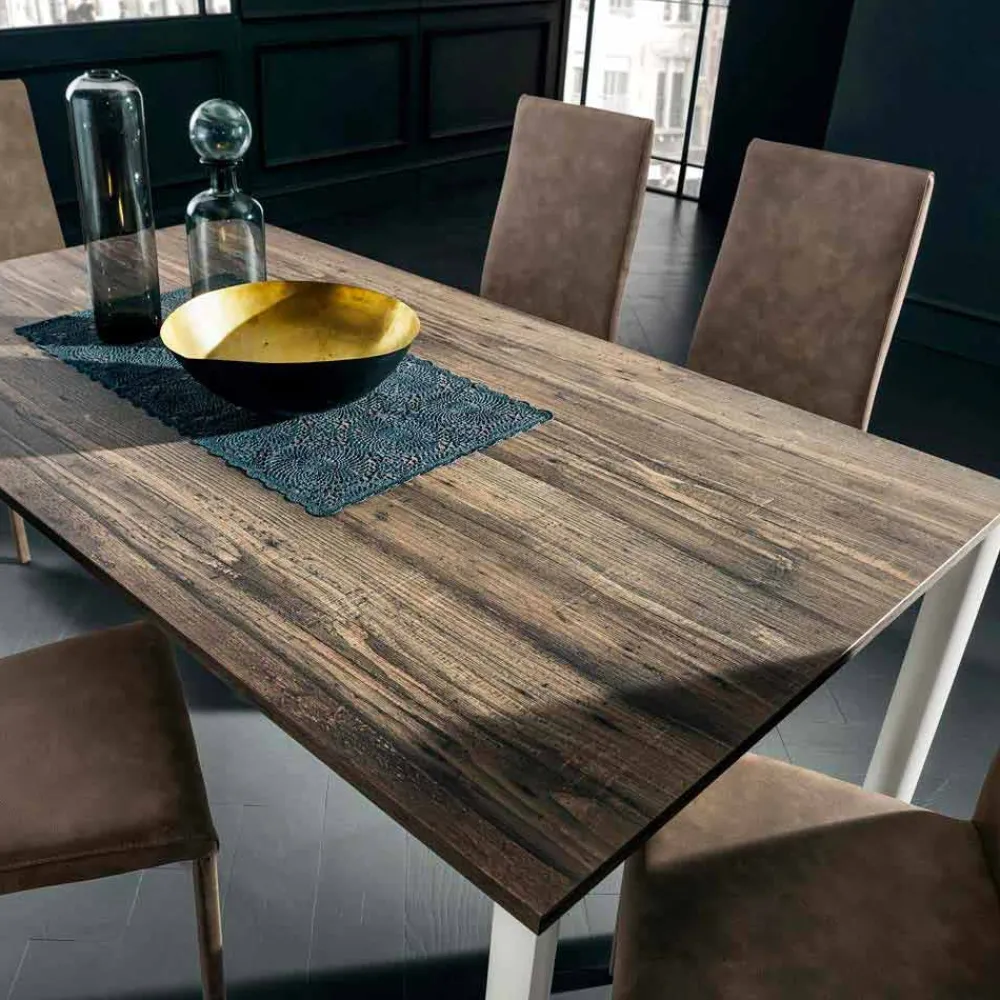 Esstisch mit ausziehbarer Platte aus HPL in Holzoptik, hergestellt in Italien, hohe Qualität.