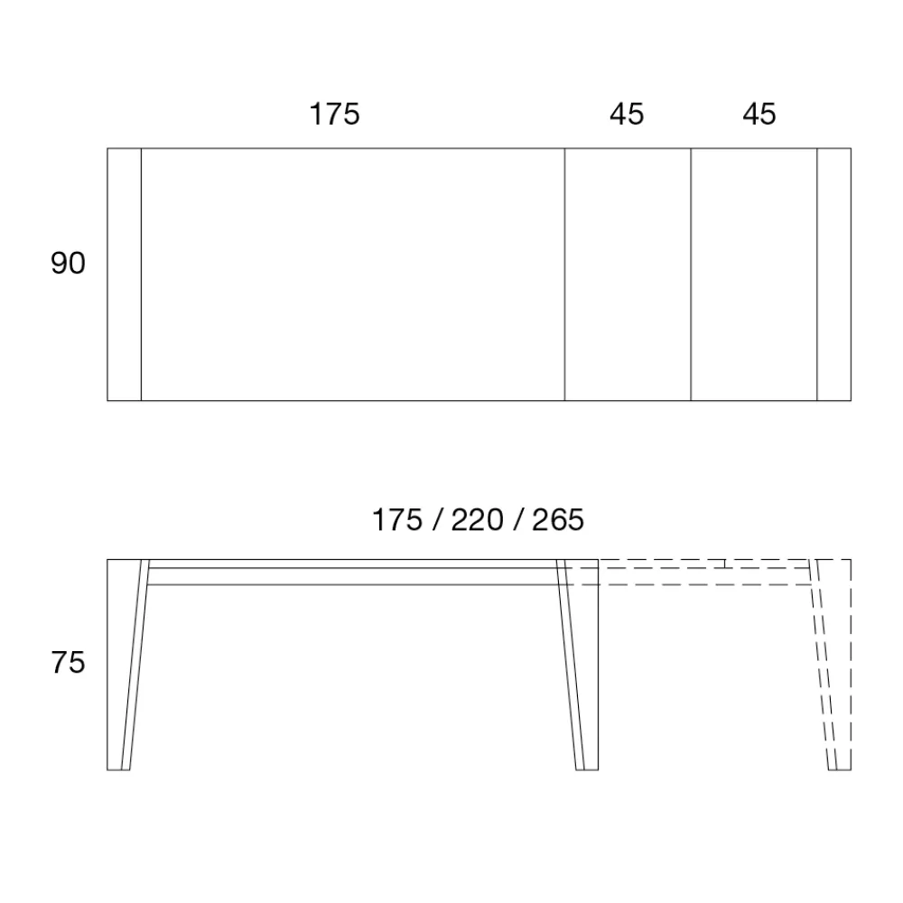 - B 175-220-265 x T 90 x H 75 cm – 2 Auszüge