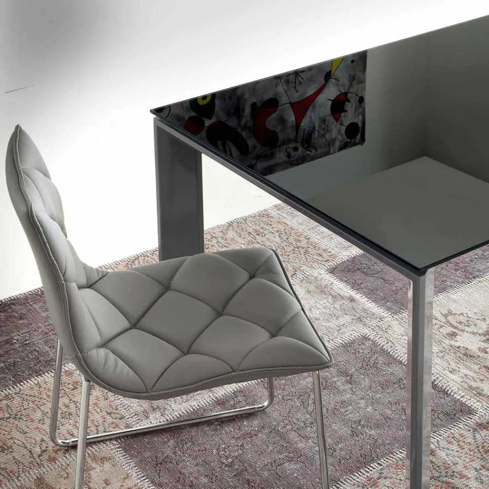 Die Tischplatte besteht aus gehärtetem Glas (10 mm).