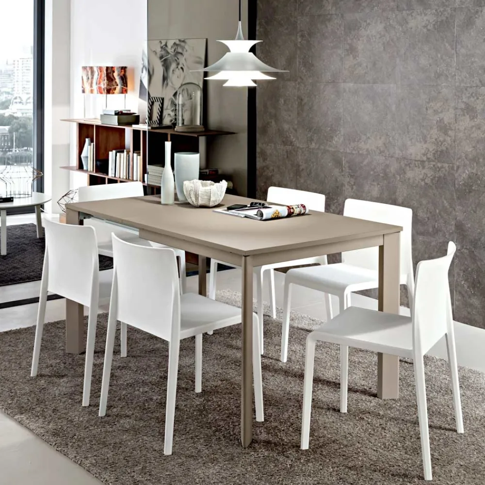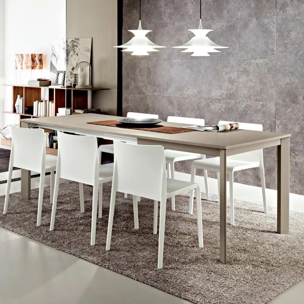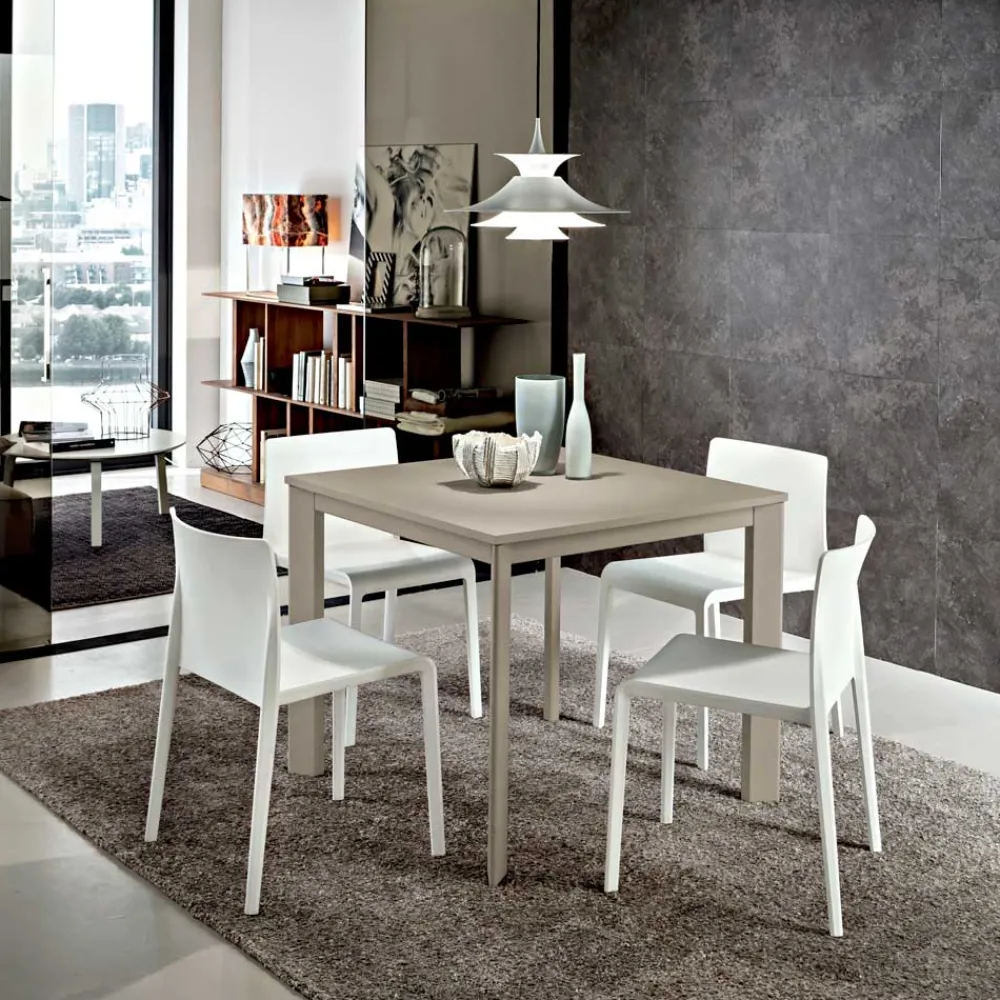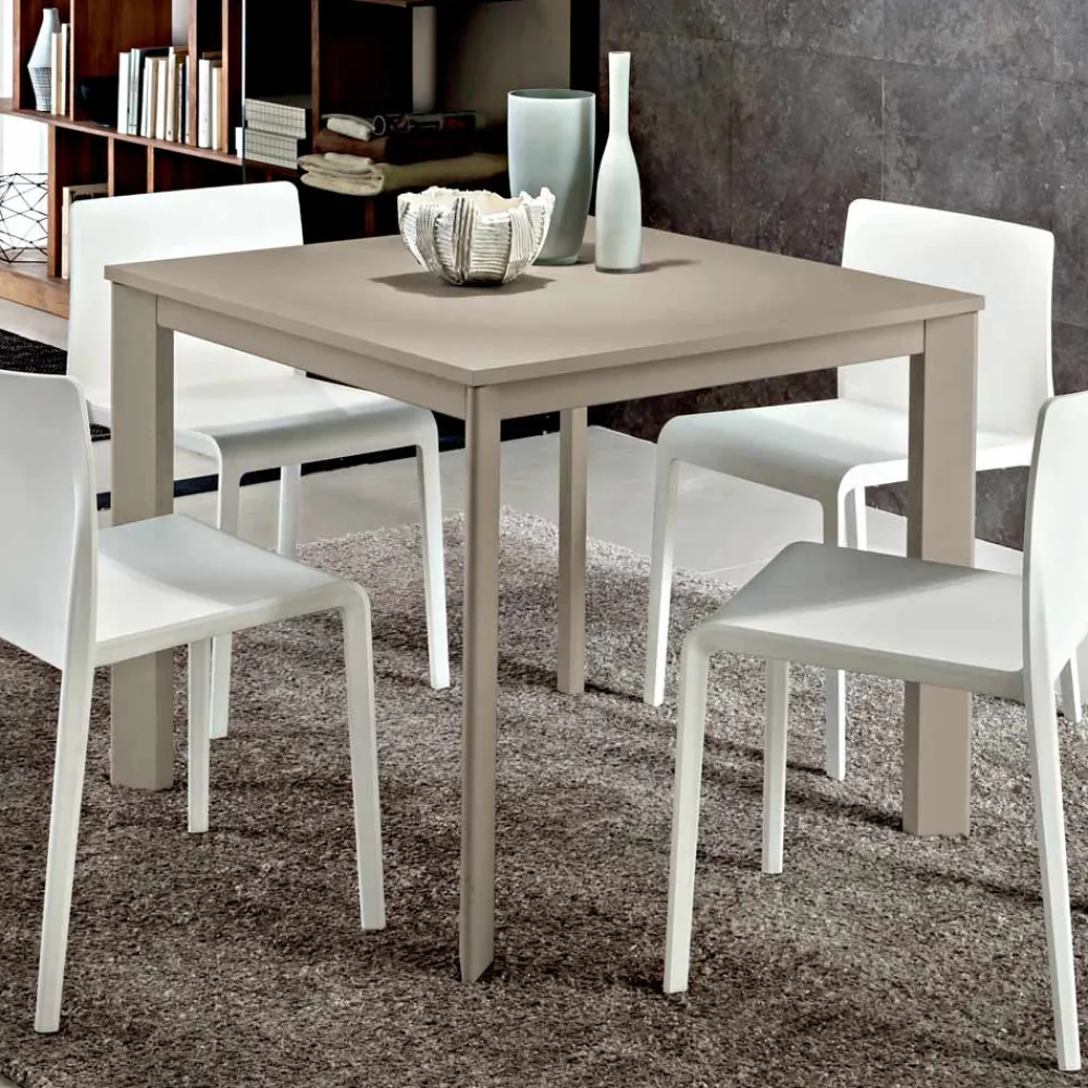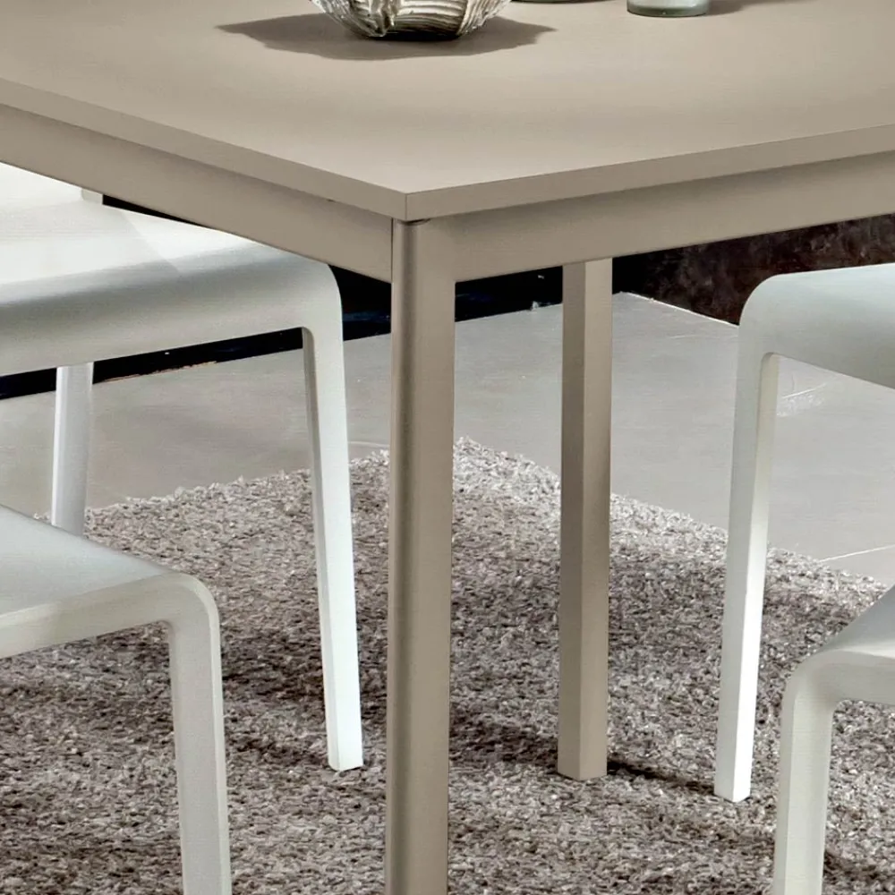 Ausziehbarer Esstisch mit quadratischer Platte aus edlem Made in Italy Fenix.