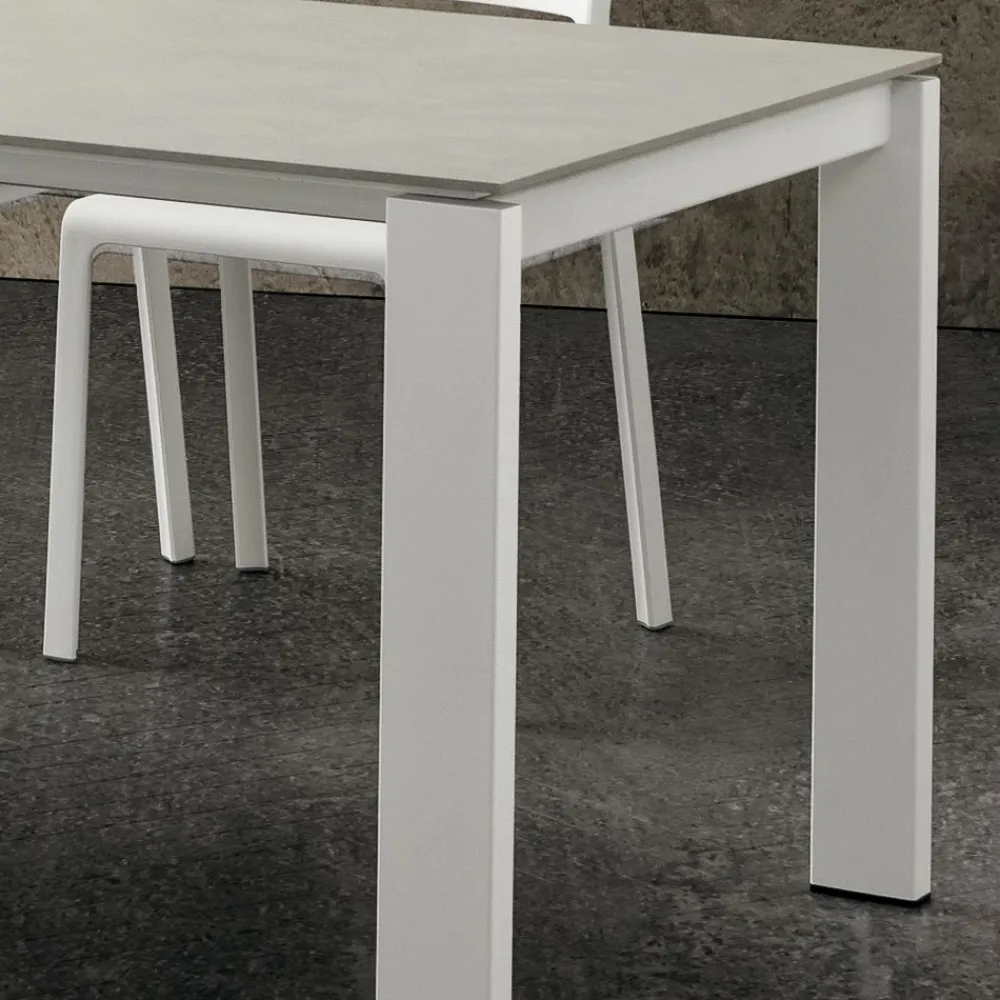 Ausziehbarer Esstisch aus hochwertigem HPL und weiß lackiertem Metall, Made in Italy.