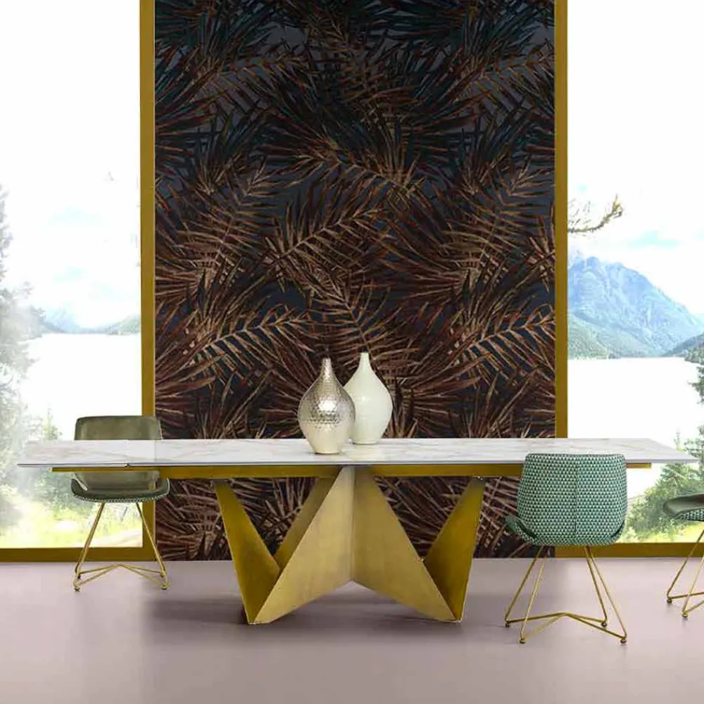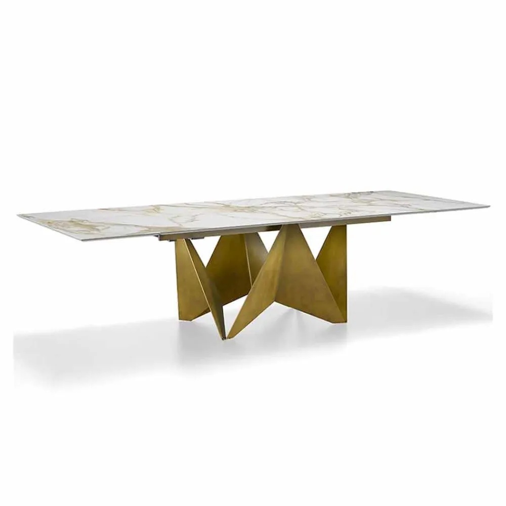 Esstisch aus Italien mit Steinzeugplatte mit Marmoreffekt und Metallstruktur aus gebürstetem Bronzefinish . Was so modern macht diese Tabelle als auch funktionell ist die Möglichkeit der Verlängerung der Spitze bis zu einem Maximum von 294 cm durch 2 abnehmbare 47 cm Kopf Erweiterungen erlauben es mit Freunden zu 14 Personen für Mittag – und Abendessen zu beherbergen.