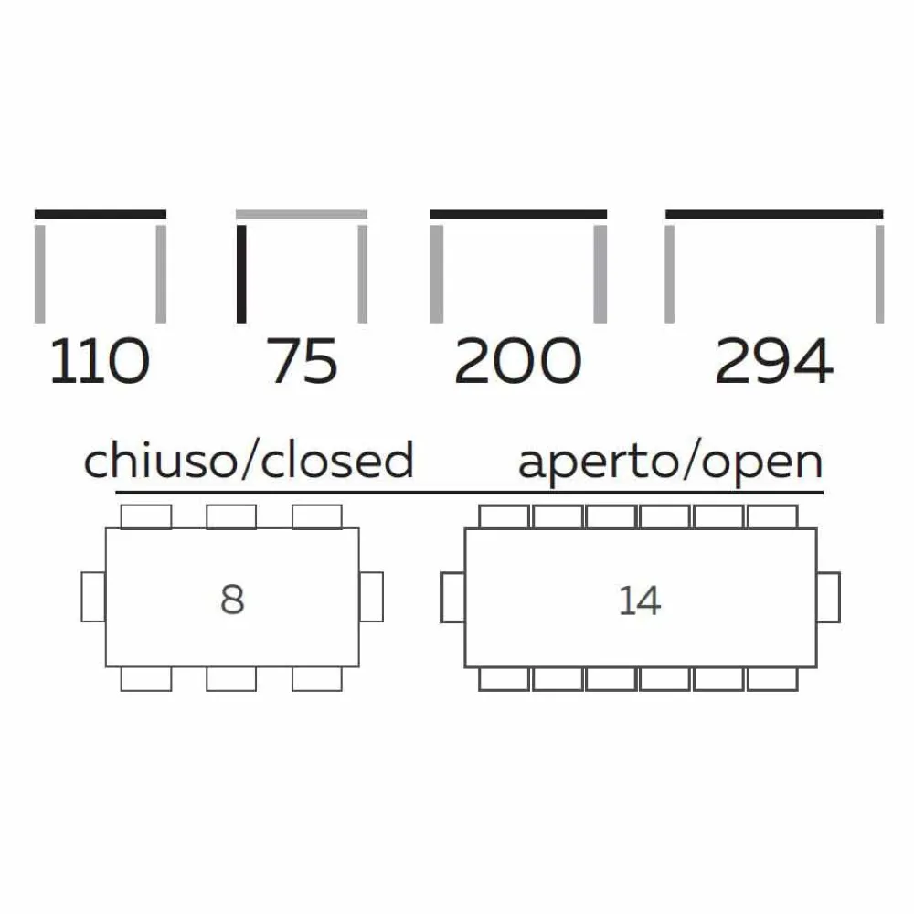 Moderner Esstisch ausziehbar bis 294 cm mit Steinzeugplatte, hochwertiges Made in Italy Produkt.