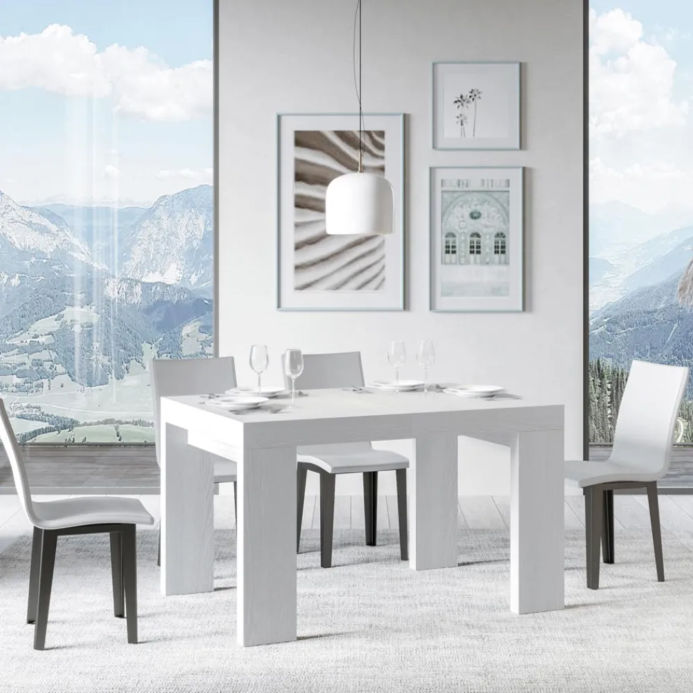 Esstisch ausziehbar ausMikropartikeln aus Holz, vollständig Made in Italy. Die Verlängerungen können schrittweise eingesetzt werden, so dass Sie je nach Platzbedarf zwischen einer, zwei oder drei Verlängerungen wählen können. Bei Nichtgebrauch sollten die Verlängerungen an anderer Stelle gelagert werden und keinen Platz innerhalb der Tischstruktur finden.