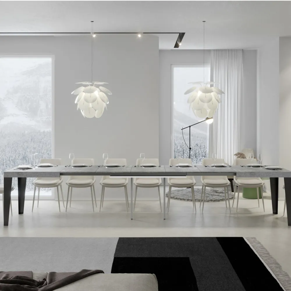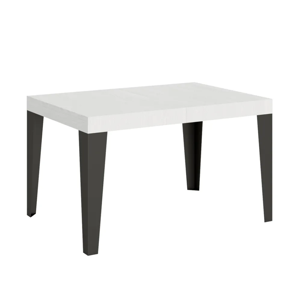 Ausziehbarer Esstisch mit einer Mikropartikel-Holz-gefalteten Platte und anthrazit lackierten Eisenbeinen, vollständig Made in Italy.
