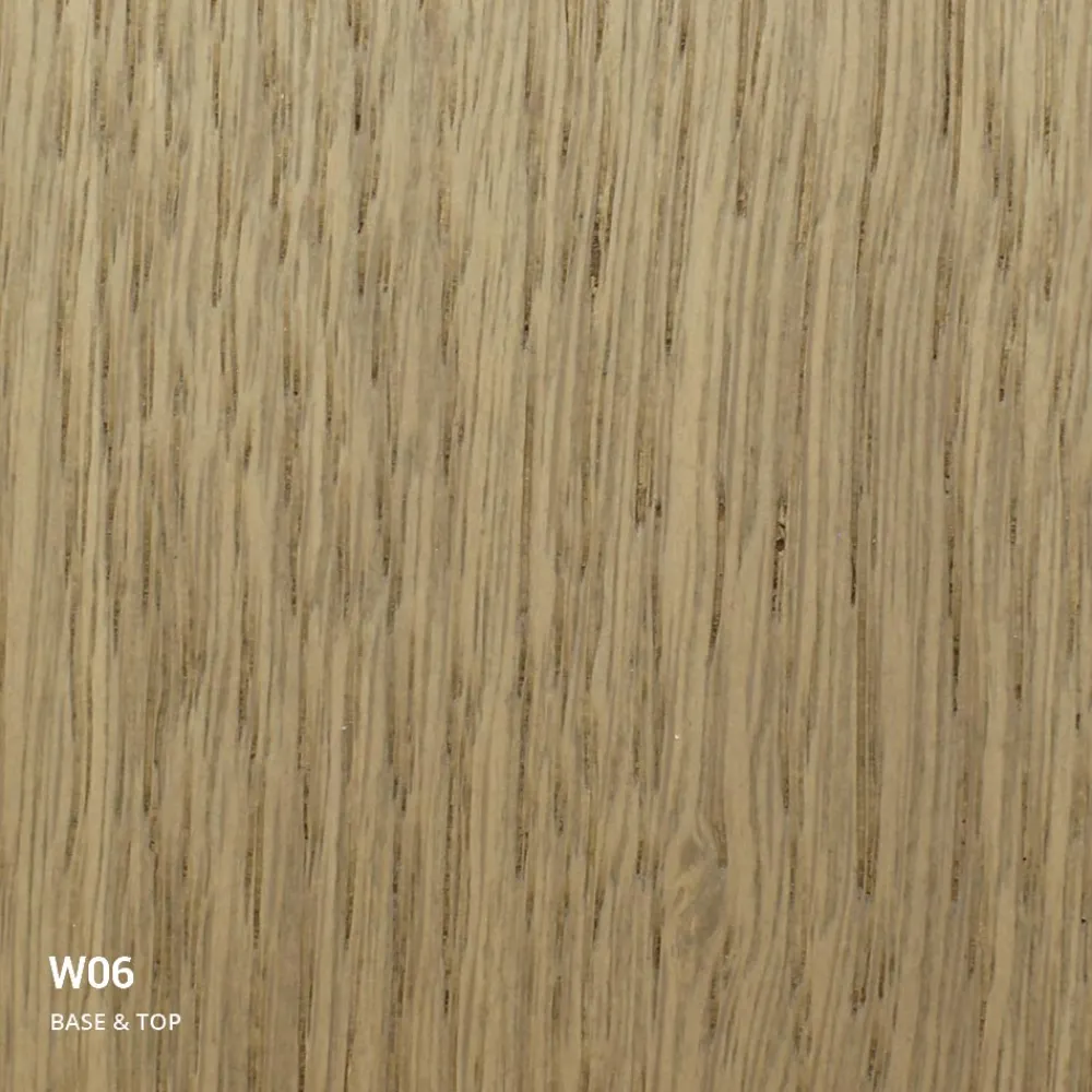 Tatsächlich passt die Platte aus furniertem Holz perfekt zu den Beinen aus gebeiztem Eschenholz .