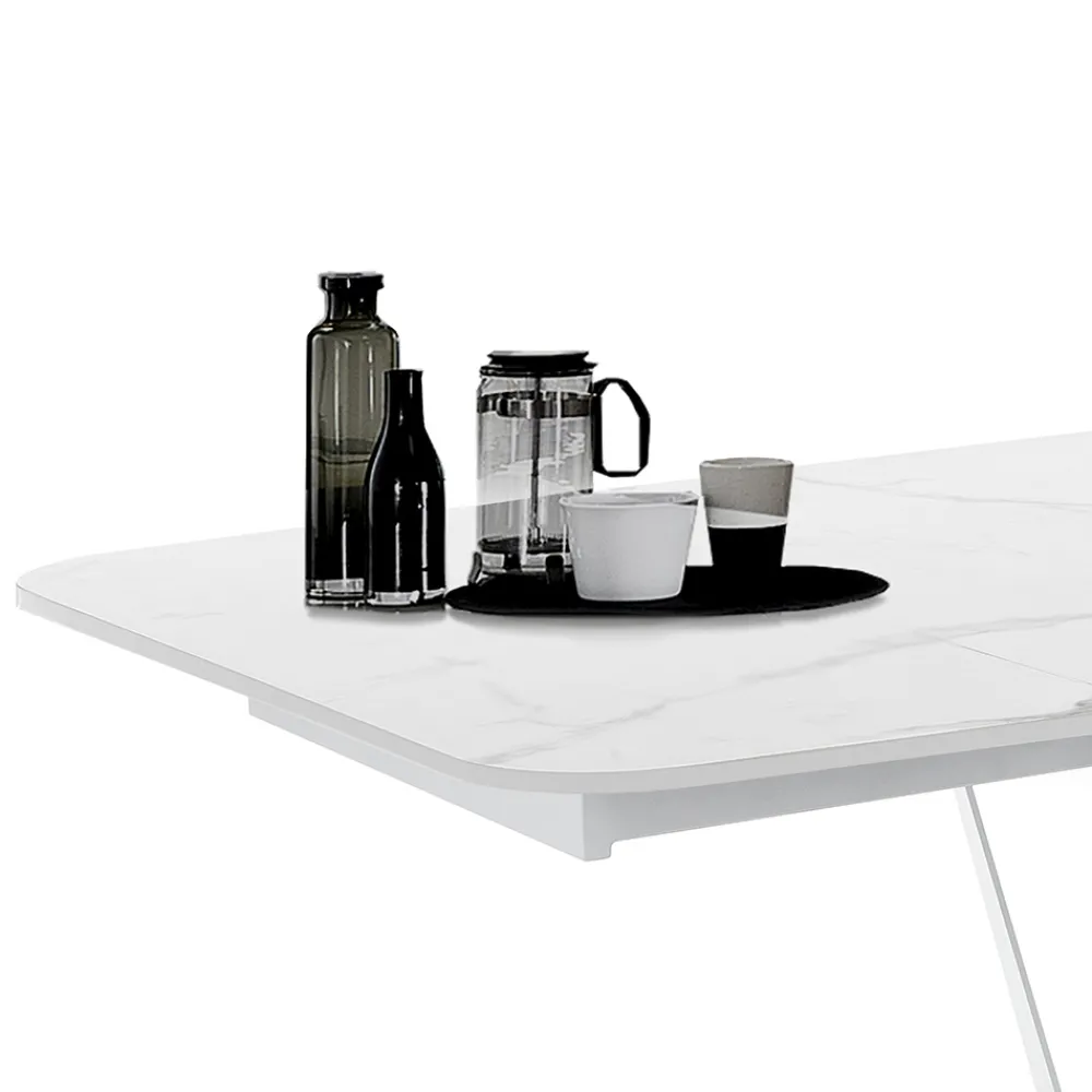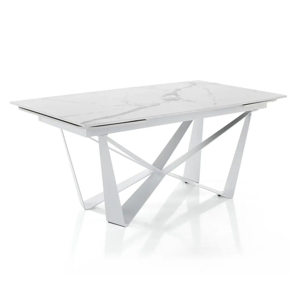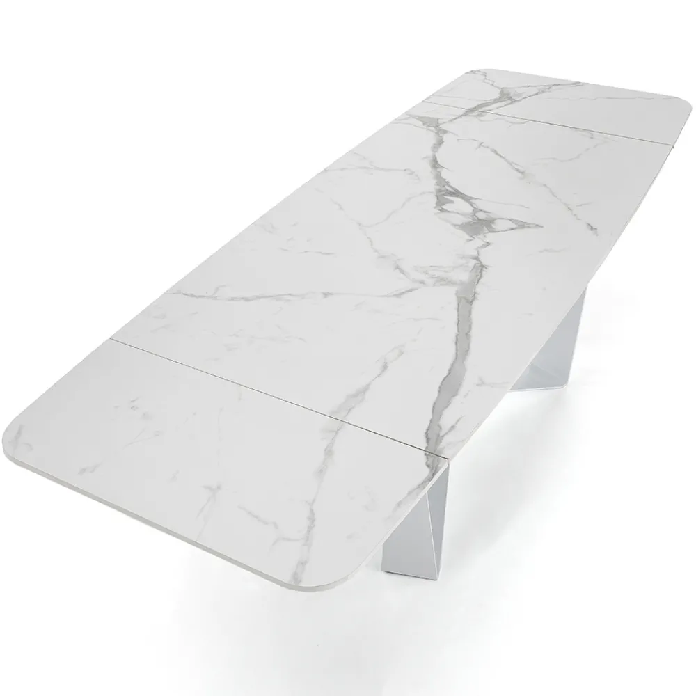 Esstisch mit ausziehbarer Platte aus Keramik mit mattem Marmoreffekt.