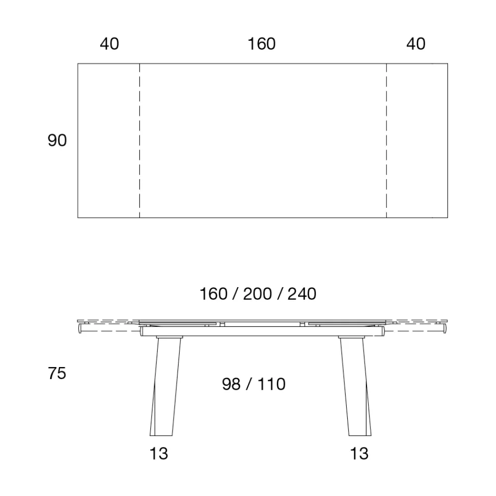 - L 160-200-240 x T 90 x H 75 cm