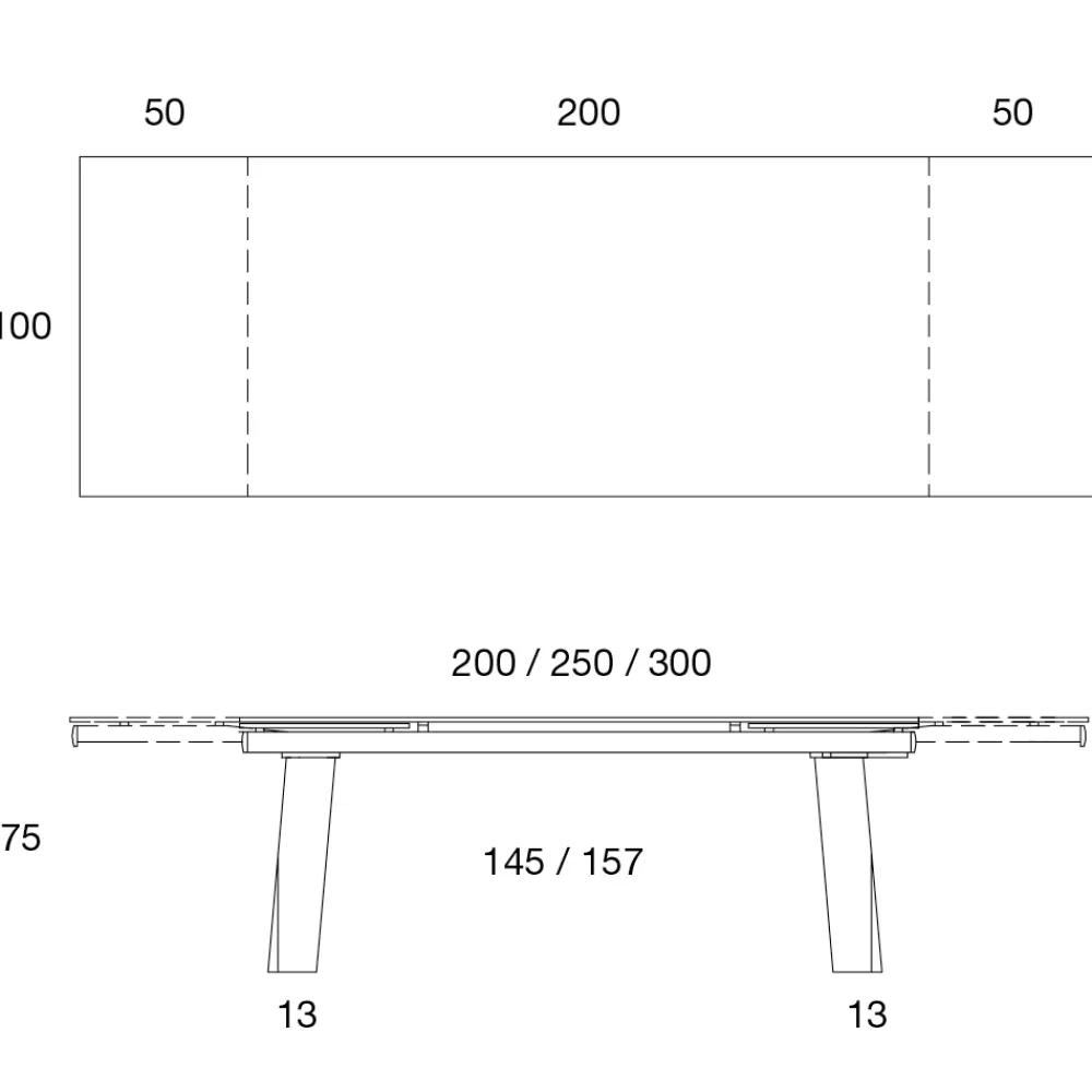 - L 200-250-300 x T 100 x H 75 cm