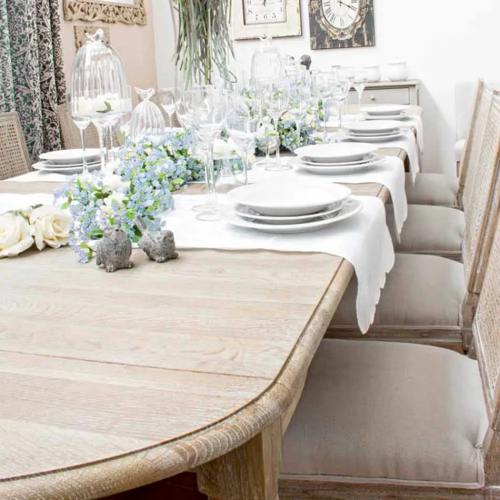 Ausziehbarer Esstisch bis 382 cm aus massivem Eichenholz.
