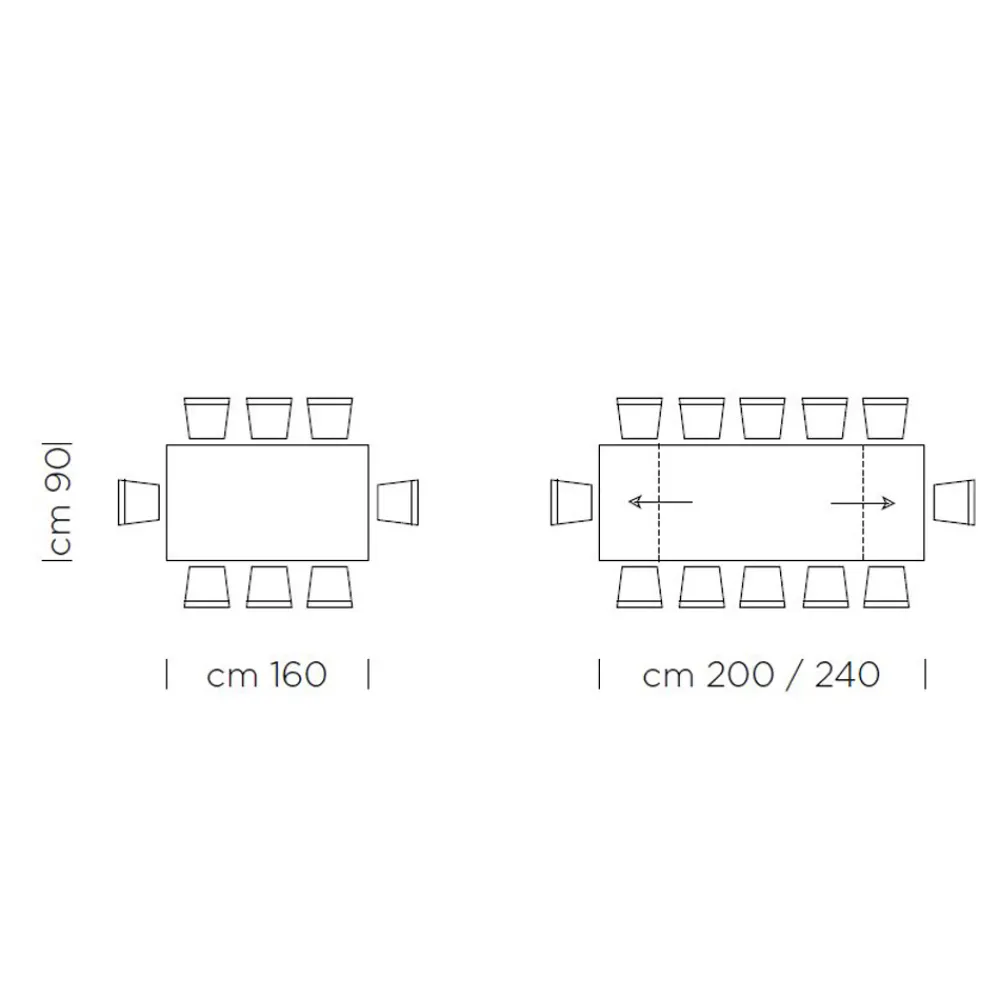 - L 160/240 x T 90 x H 75,5 cm 12 Sitzplätze (2 Verlängerungen à 40 cm);
