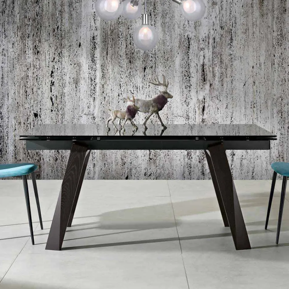 Viadurini Living Esstische-Fester Fasstisch aus glänzendem Calacatta-Schwarz-Laminam – Dialogo