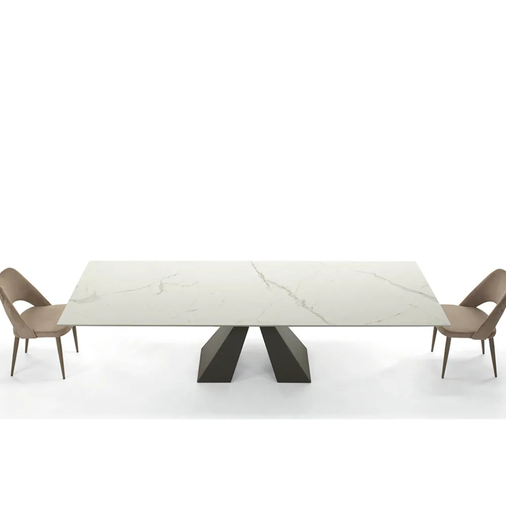 Ausziehbarer Esstisch bis zu 278 cm in modernem Design aus Keramik und Stahl, hergestellt in Italien.