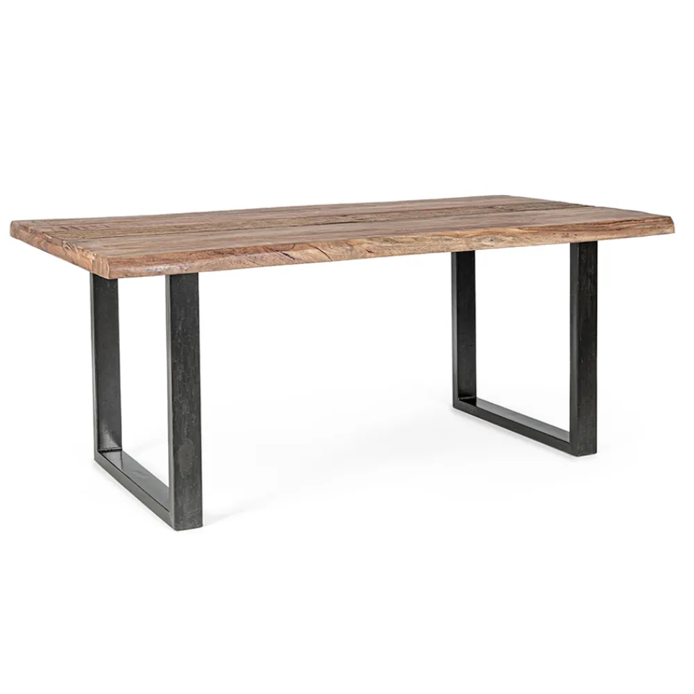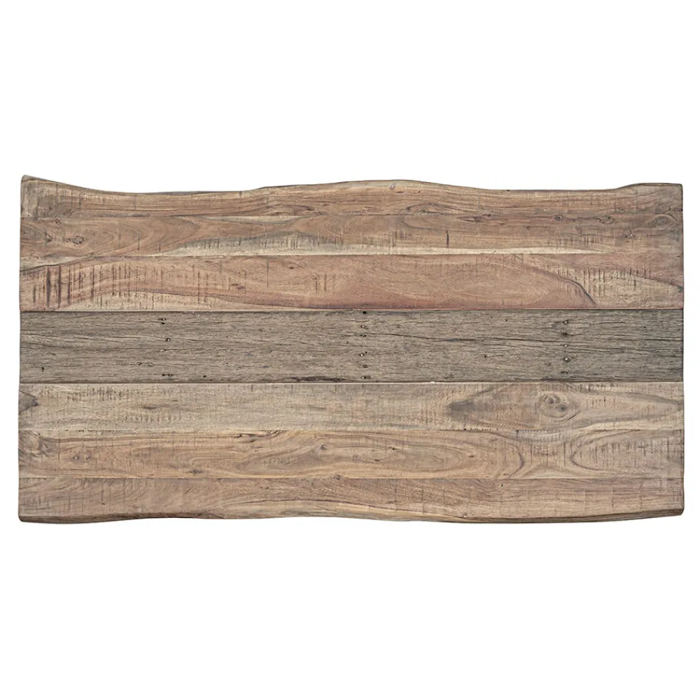 Esstisch aus Akazienholz mit recyceltem Einsatz und Stahlgestell, 8 Personen.
