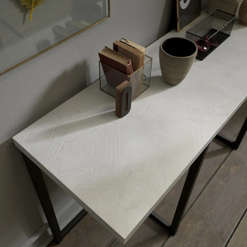 Konsole ausziehbar auf 150 cm aus Melamin und Metall Made in Italy.