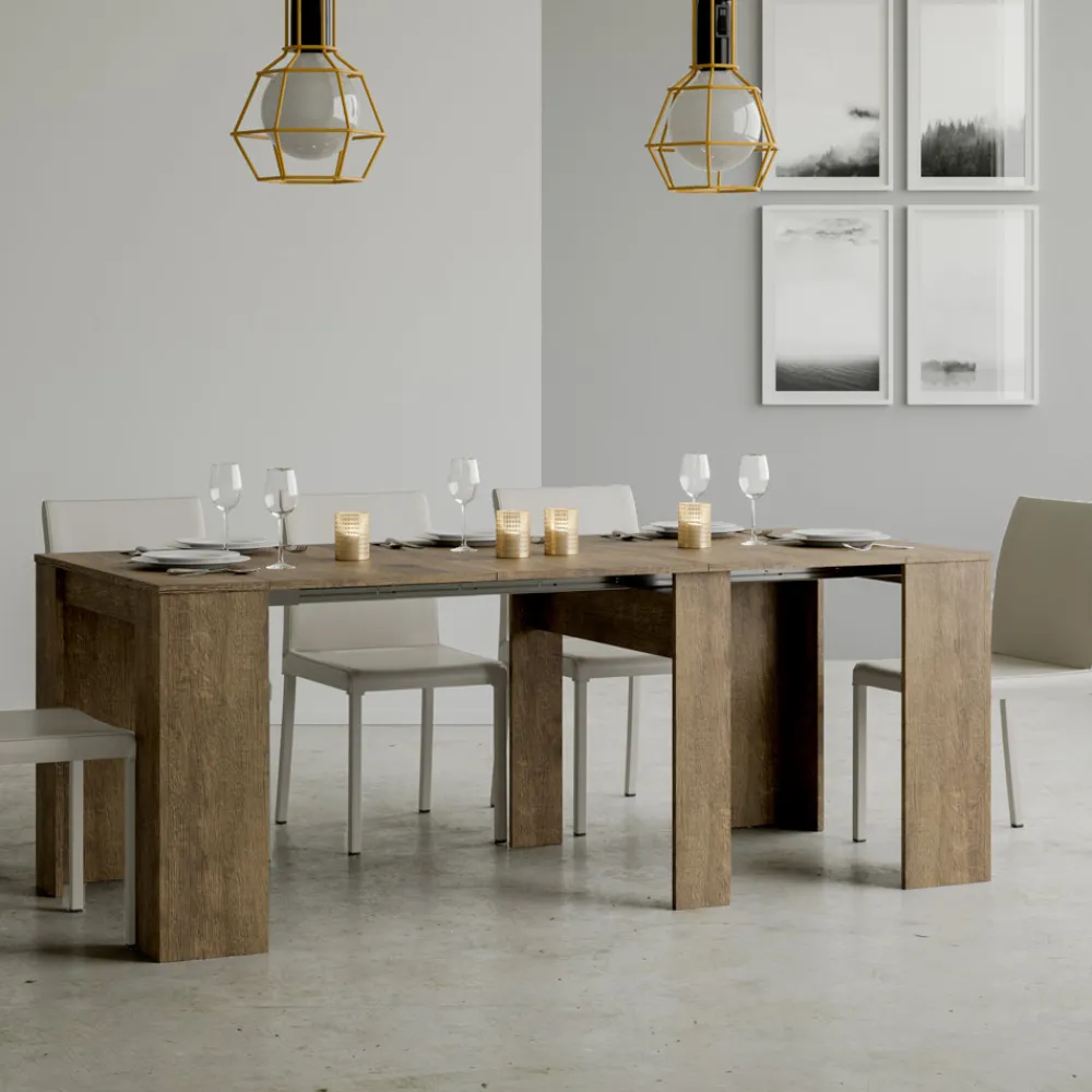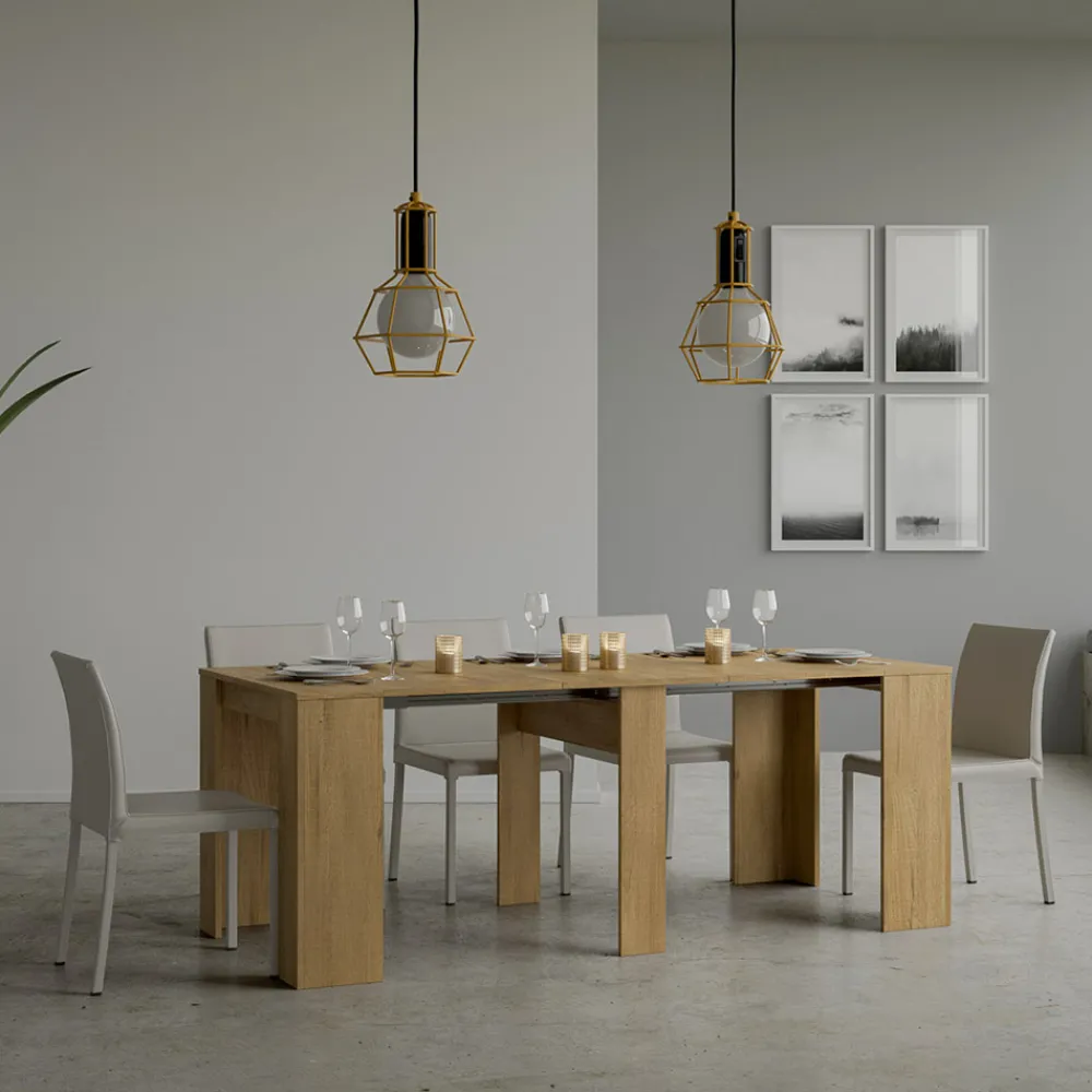 Der ausziehbare Mechanismus ist ein Beispiel für Raumintelligenz: Der Konsolentisch kann leicht in einen größeren Tisch verwandelt werden, was ihn zu einer vielseitigen Lösung für kleine Wohnungen oder Räume macht, die multifunktionale Möbel benötigen. È er ist ideal für alle, die funktionale Schönheit und kluges Design schätzen, das Platz spart, ohne auf Stil zu verzichten.