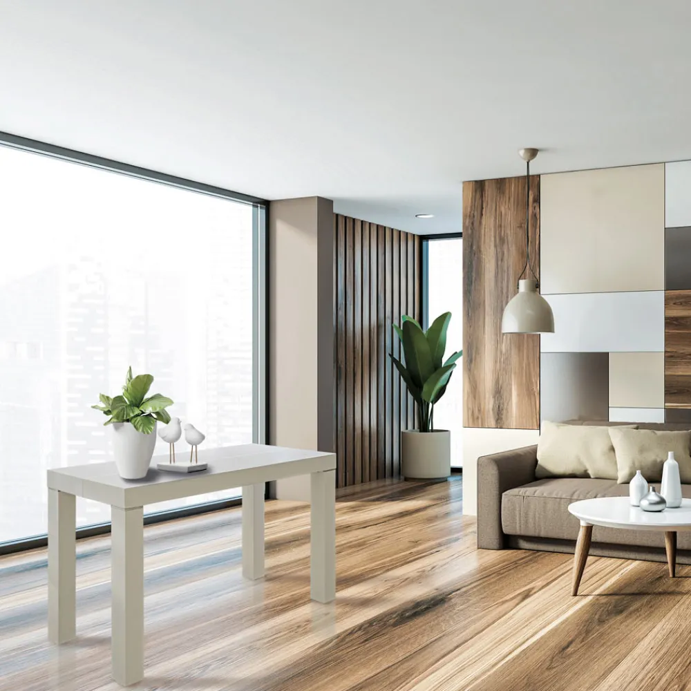 Ausziehbare Wohnkonsole aus weißdornfarbenem Eschenholz . Das Produkt wird vollständig in der Toskana unter Verwendung hochwertiger Materialien hergestellt und wird mit 6 Verlängerungen von jeweils 45 cm geliefert, die in der Mitte mit einem Metallführungssystem eingesetzt werden können, das getrennt gehalten werden kann, was es vielseitig macht.