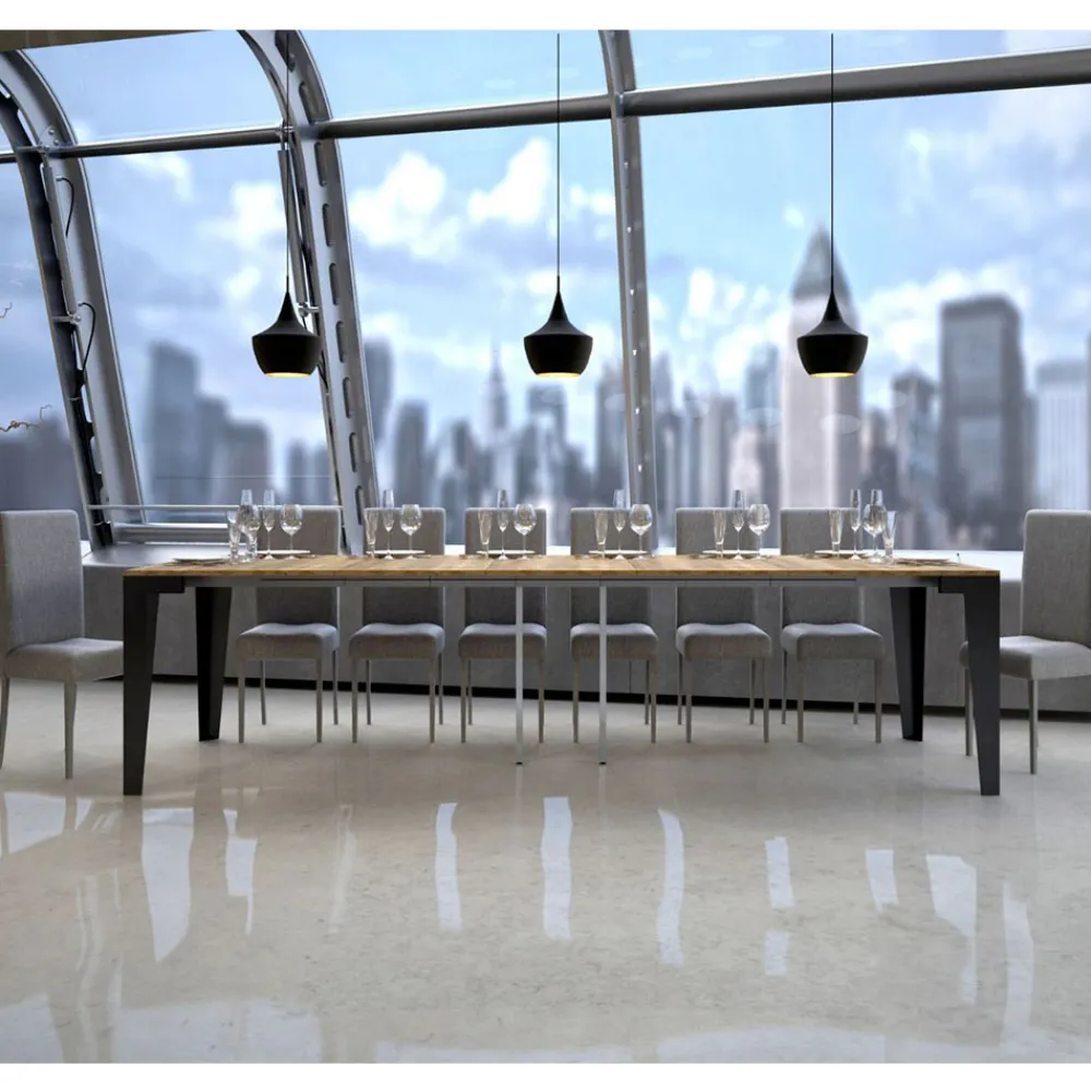 Ausziehbarer Konsolentisch aus Metall und Mikropartikeln aus Holz, Made in Italy