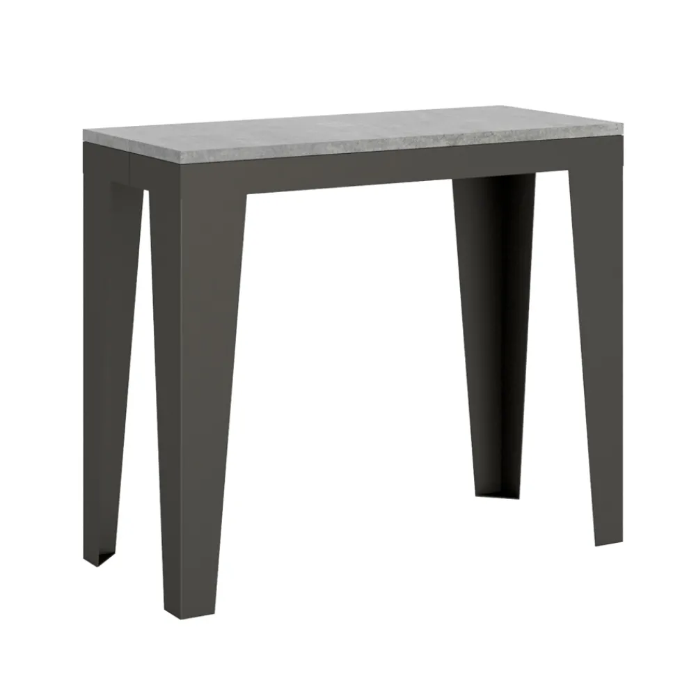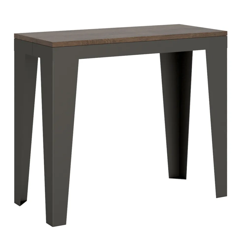 Ausziehbarer Konsolentisch mit einer Platte aus Mikropartikeln aus Holz und einem Gestell aus anthrazit lackiertem Metall, komplett Made in Italy.