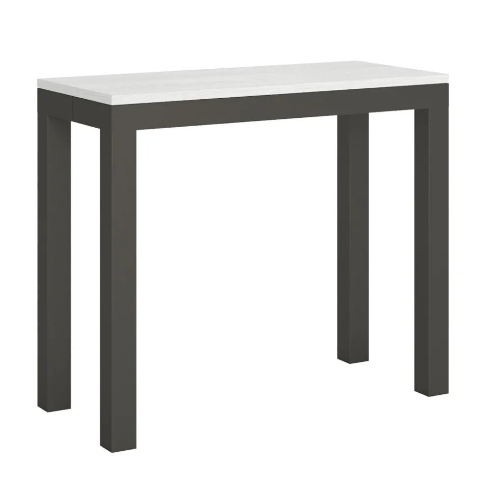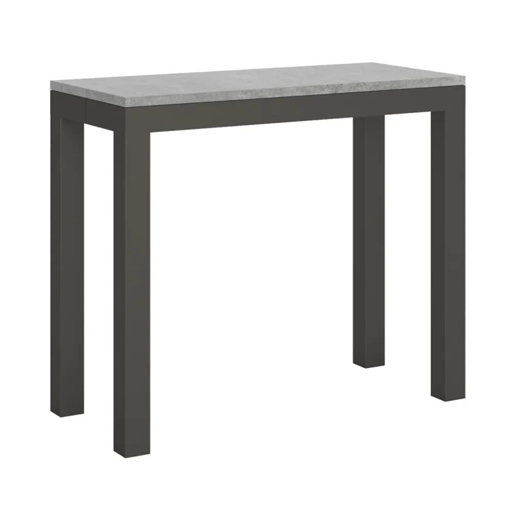 Ausziehbarer Konsolentisch mit einer Platte aus Mikropartikeln aus Holz und einem Gestell aus anthrazit lackiertem Eisen, komplett Made in Italy.