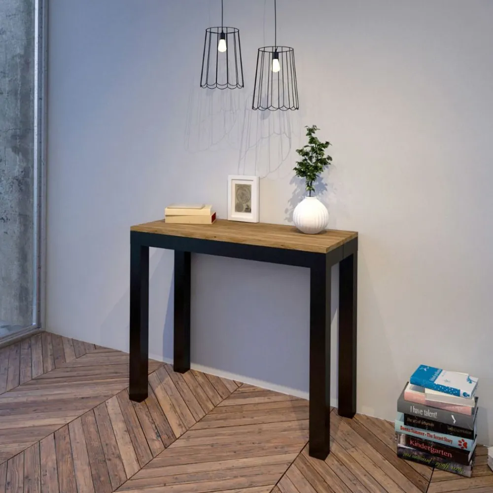 Ausziehbarer Konsolentisch aus Eisen und Mikropartikelholz, Made in Italy