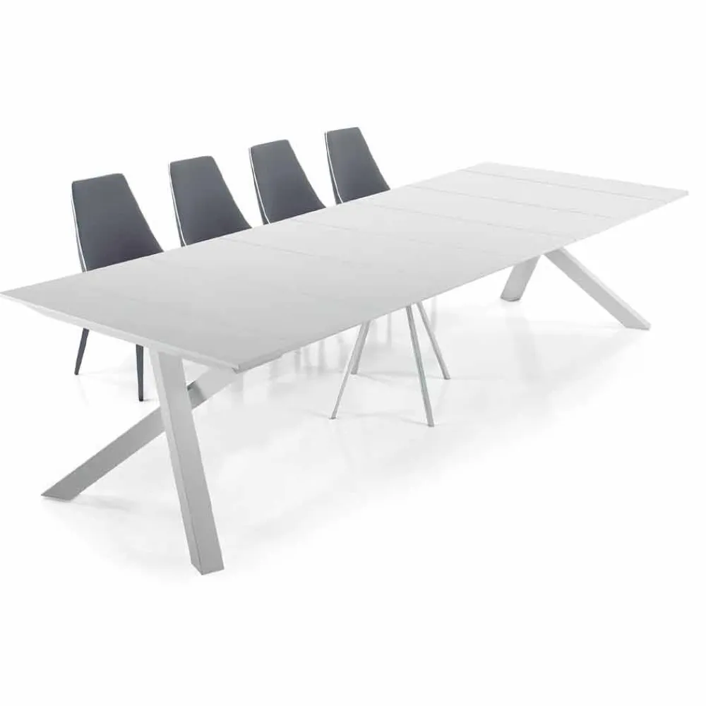 Ausziehbare Konsole bis zu 325 cm aus lackiertem Melaminholz und Designstahl, hergestellt in Italien.