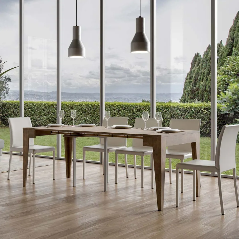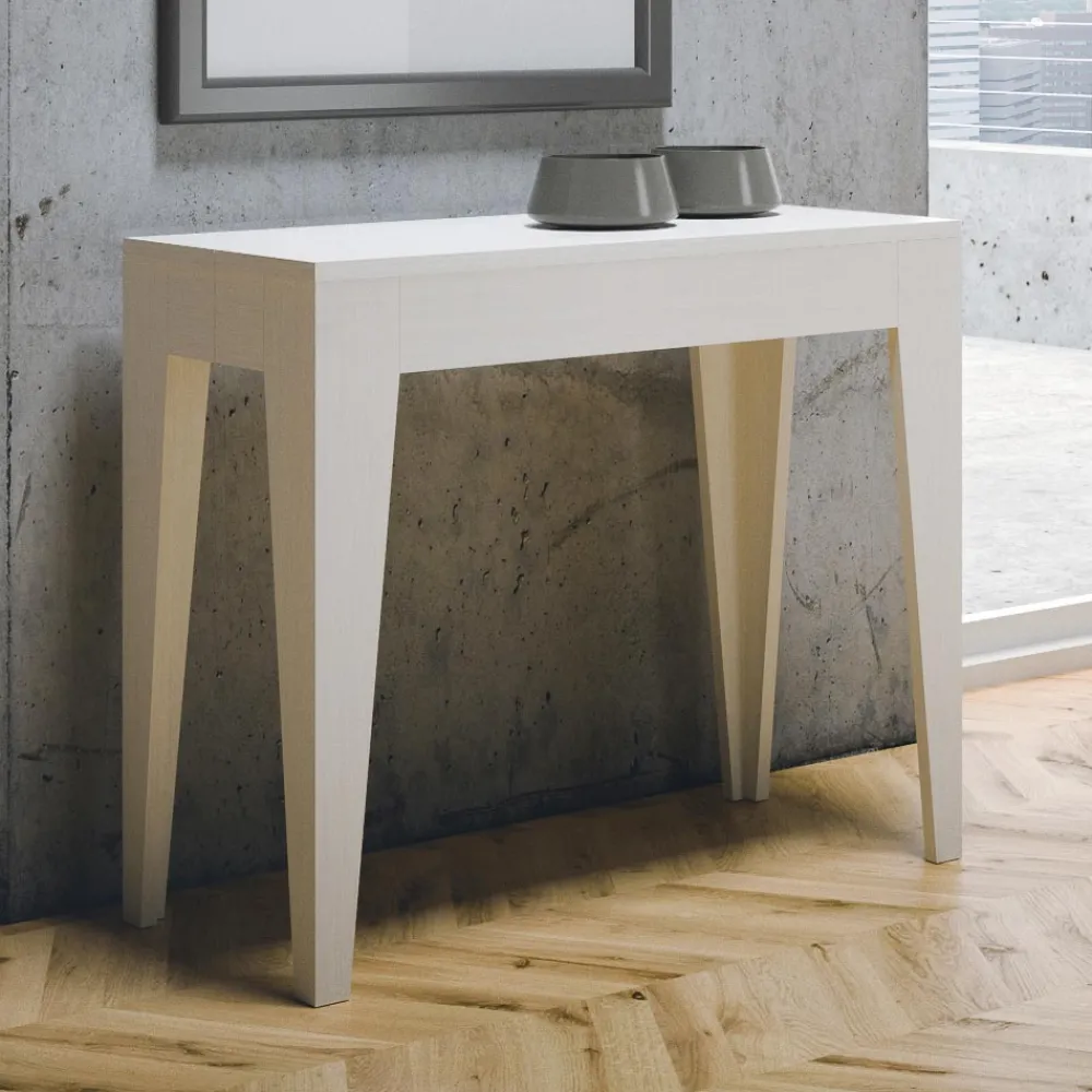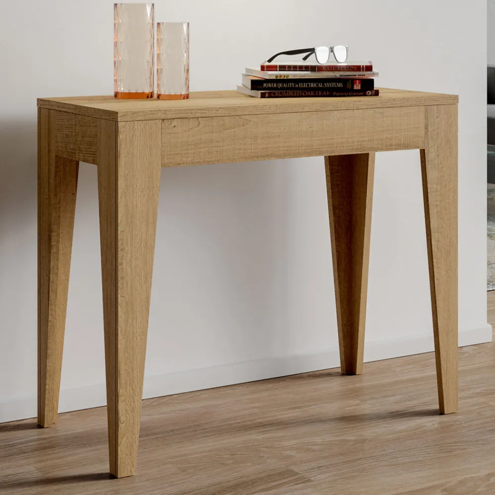 Ausziehbarer Konsolentisch aus mikrofurniertem Holz, vollständig in Italien hergestellt.