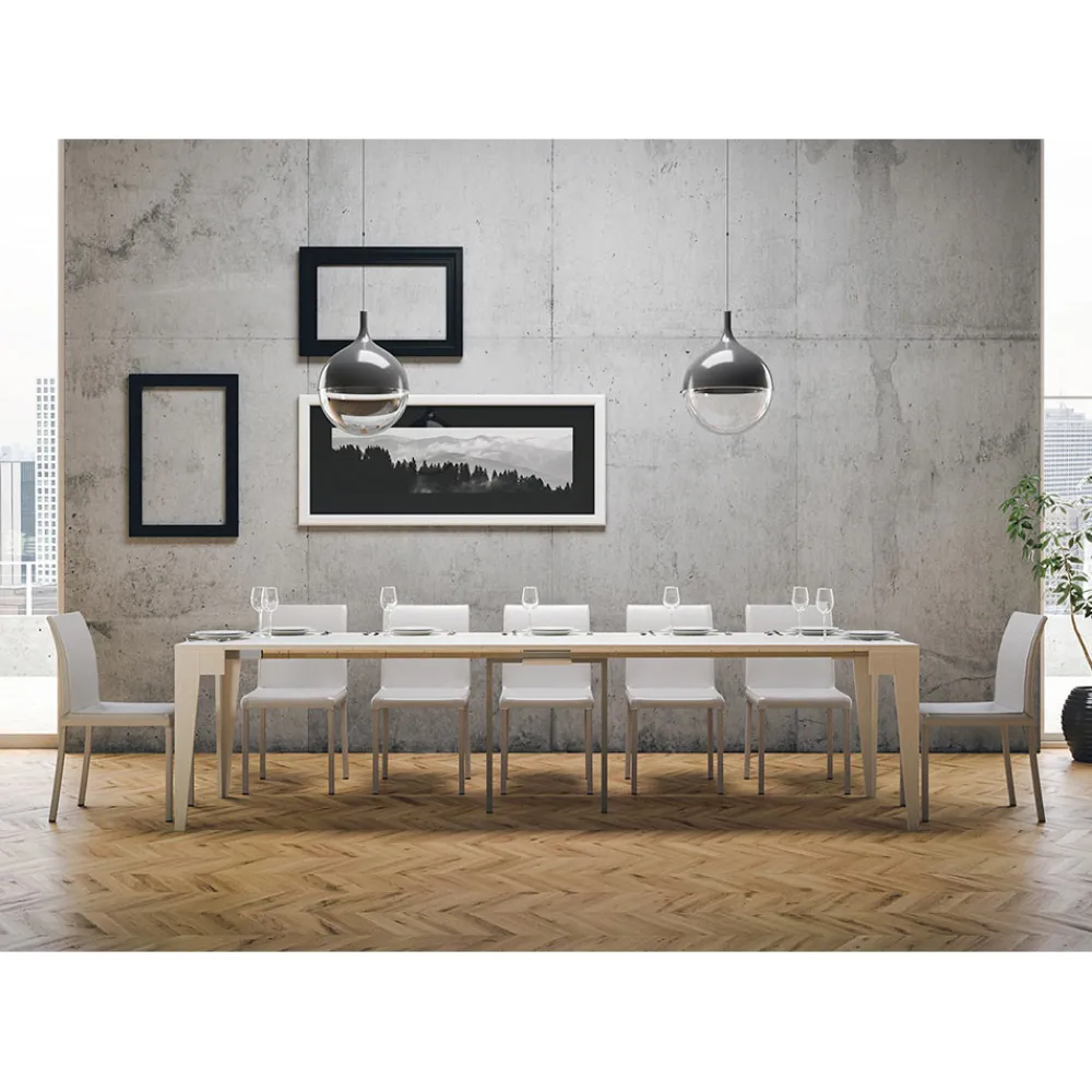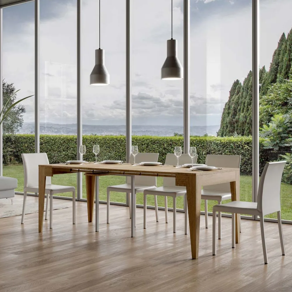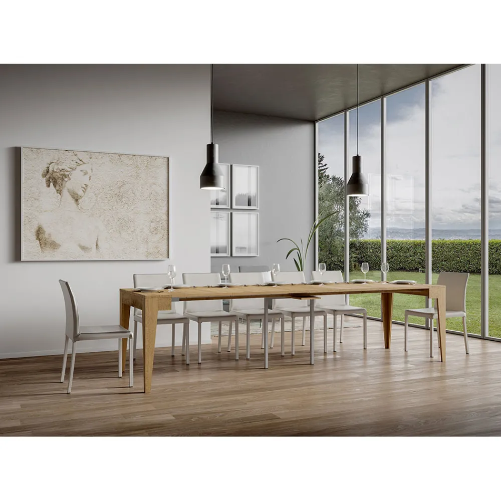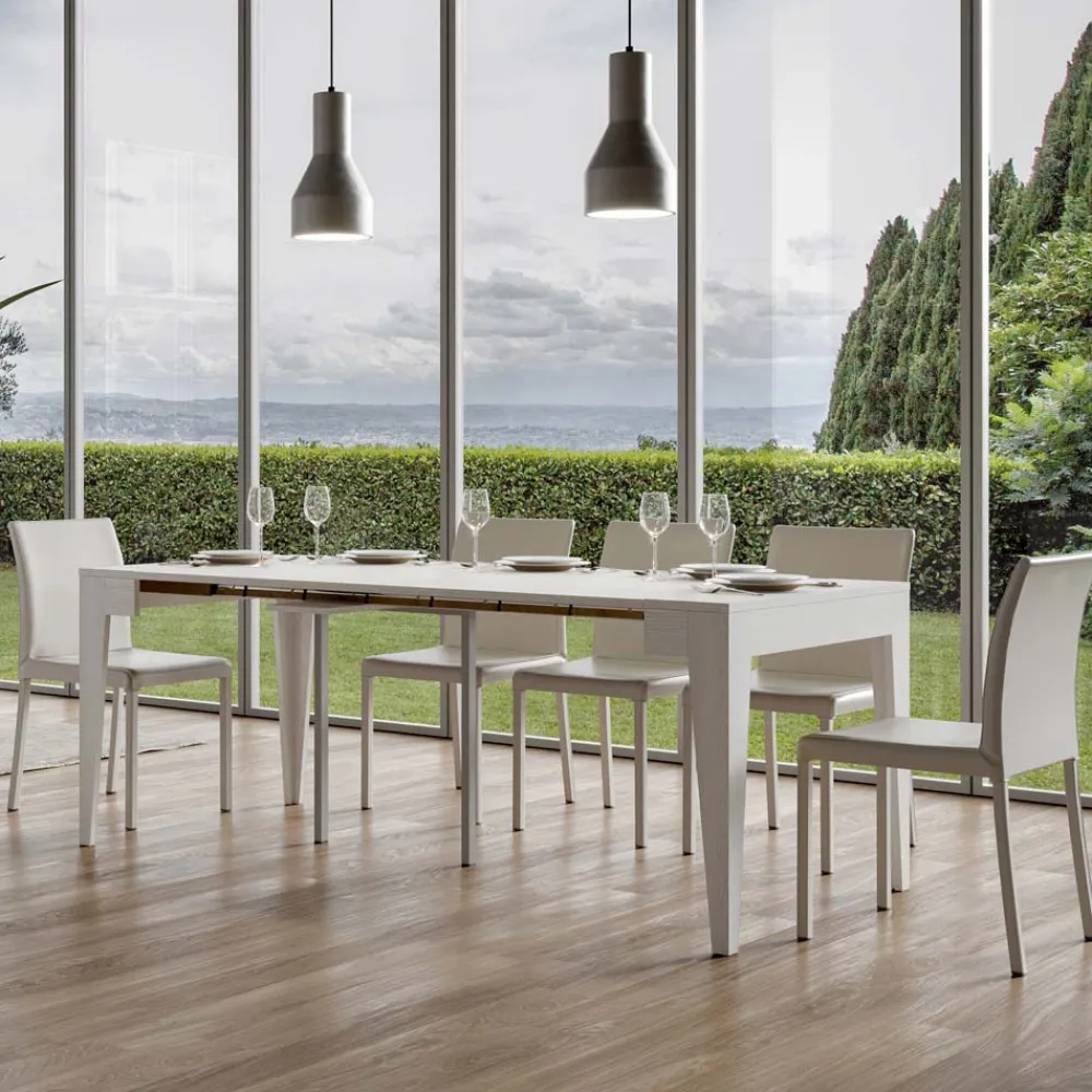 Ausziehbarer Konsolentisch aus mikrofurniertem Holz, vollständig in Italien hergestellt.